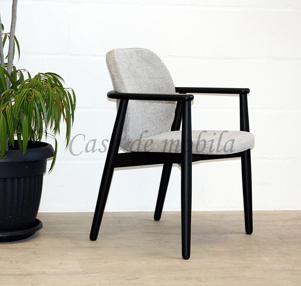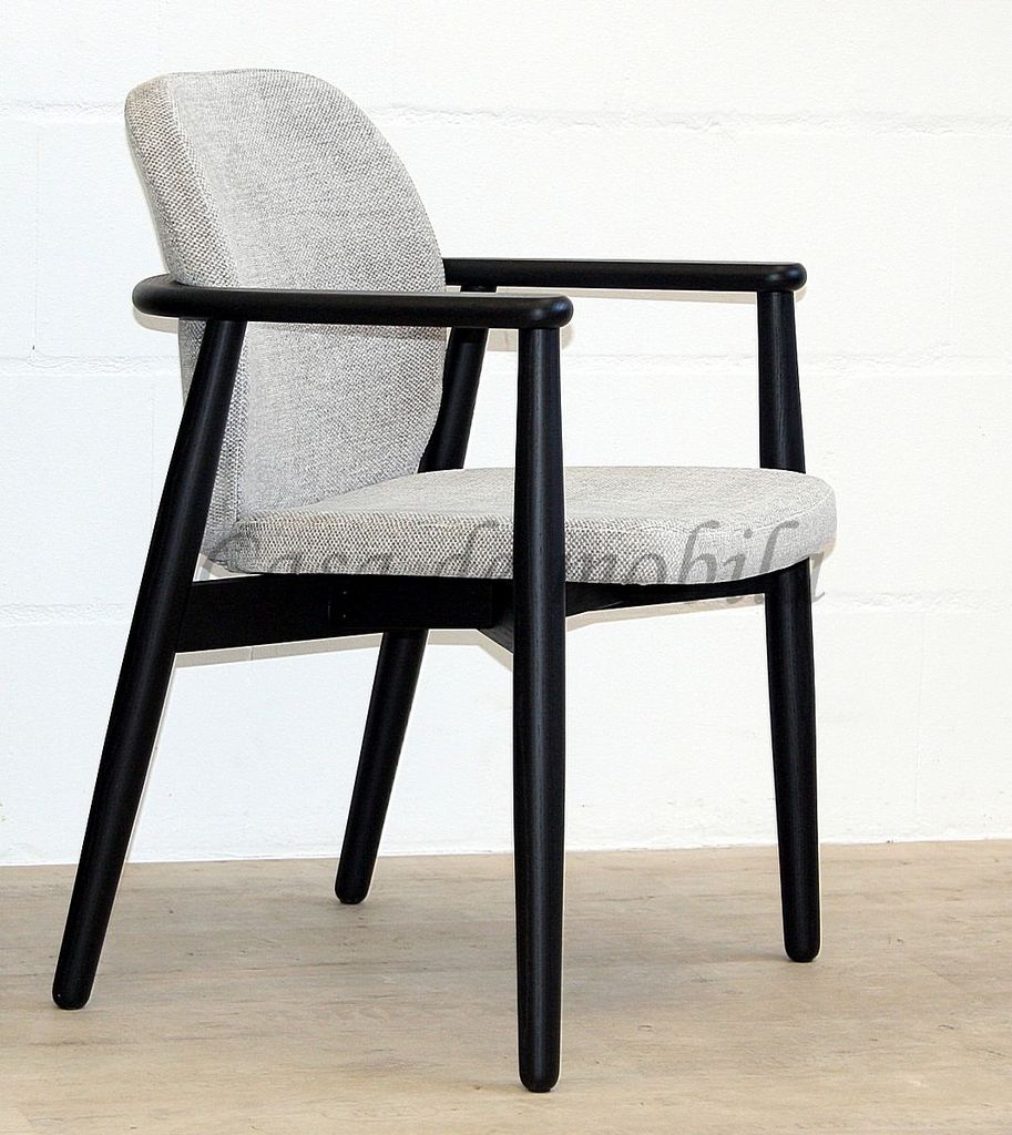 ⚠ Abbildung zeigt Sessel Costner, Esche massiv schwarz lackiert, Polster: Impala 40 Ash Grey