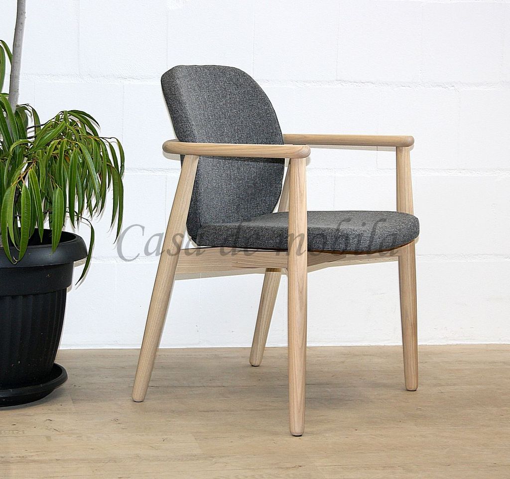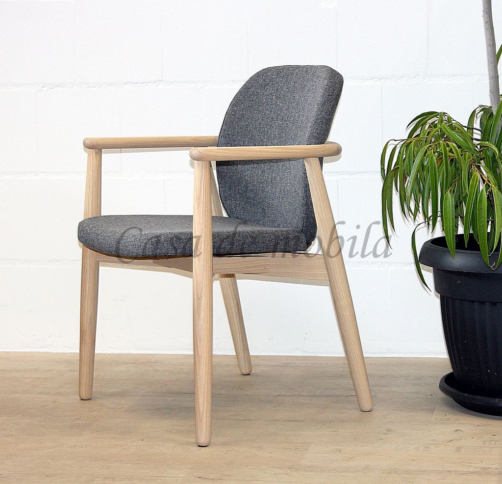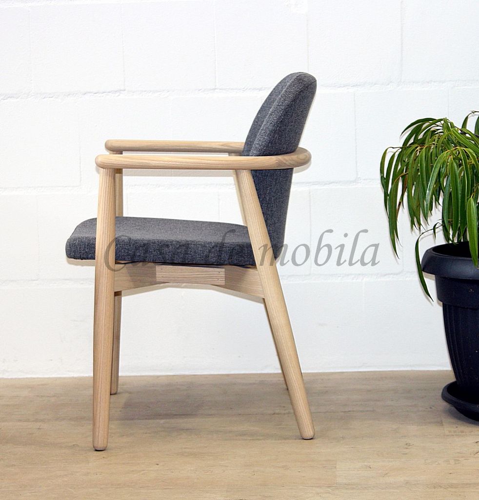 ⚠ Abbildung zeigt Sessel Costner, Esche massiv natur und weiß geölt, Polster: Wooly 1042 Grafite