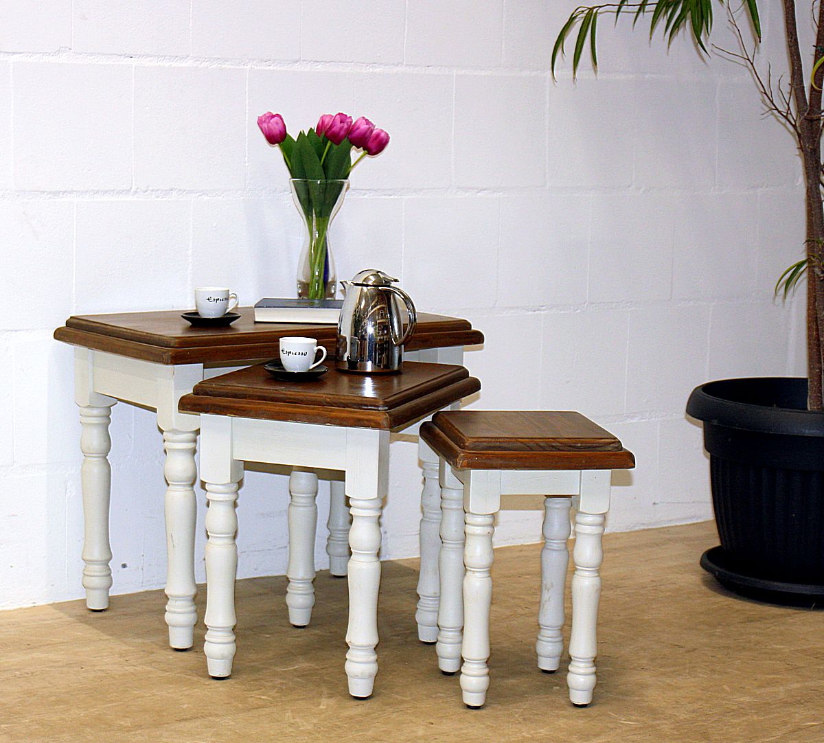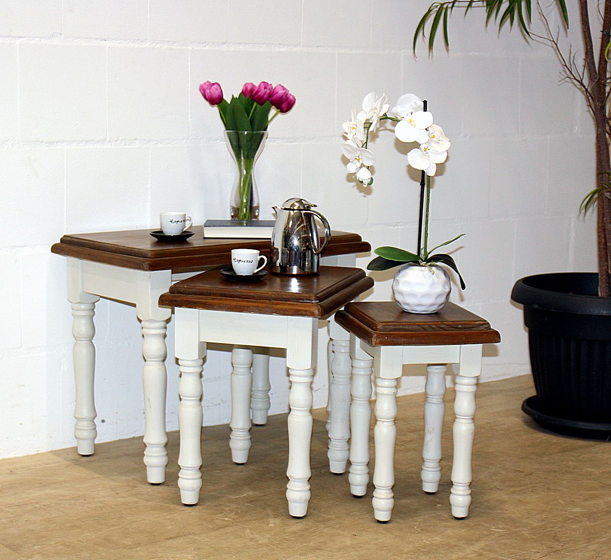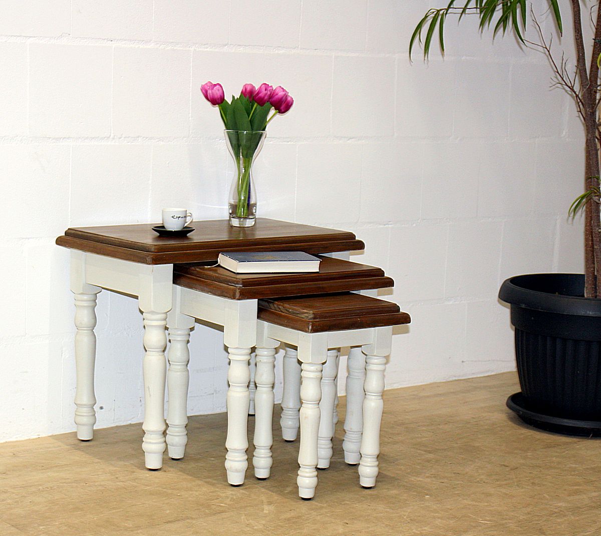 Beistelltisch Set 3teilig PORTIMAO 68x54x44cm Pinie Altholz massiv weiß Antik