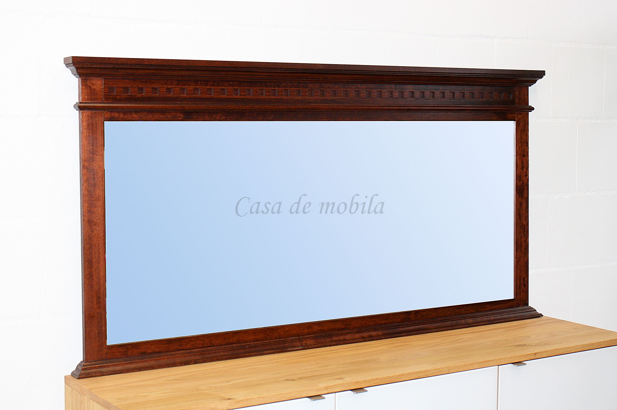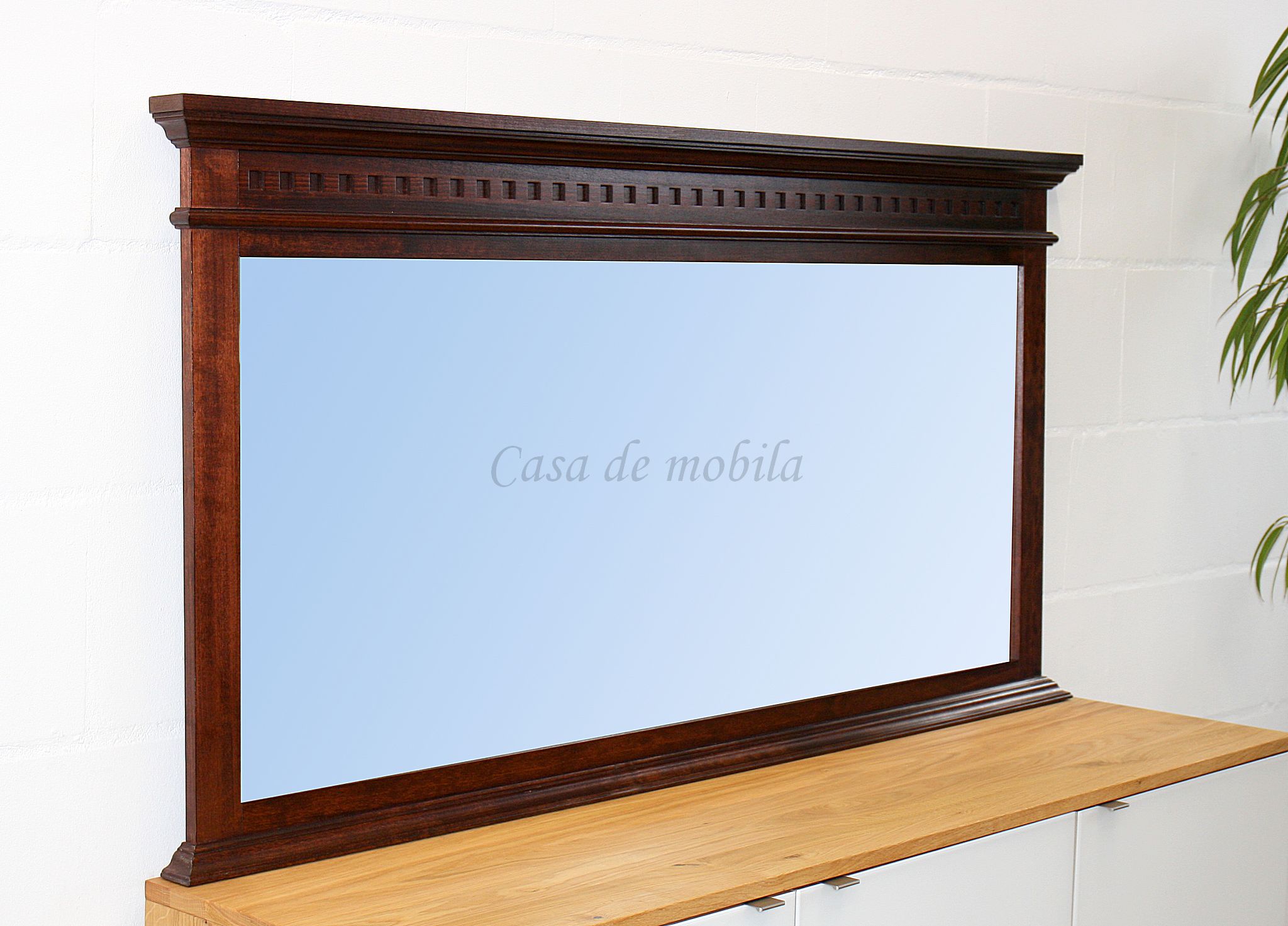 Der Rahmen dieses großen Wandspiegels aus der Serie VERONA ist aus massiver Pappel gefertigt, im Kranz sind als besonderes Designmerkmal quadratische Vertiefungen eingearbeitet.