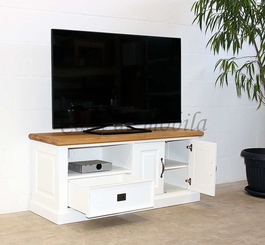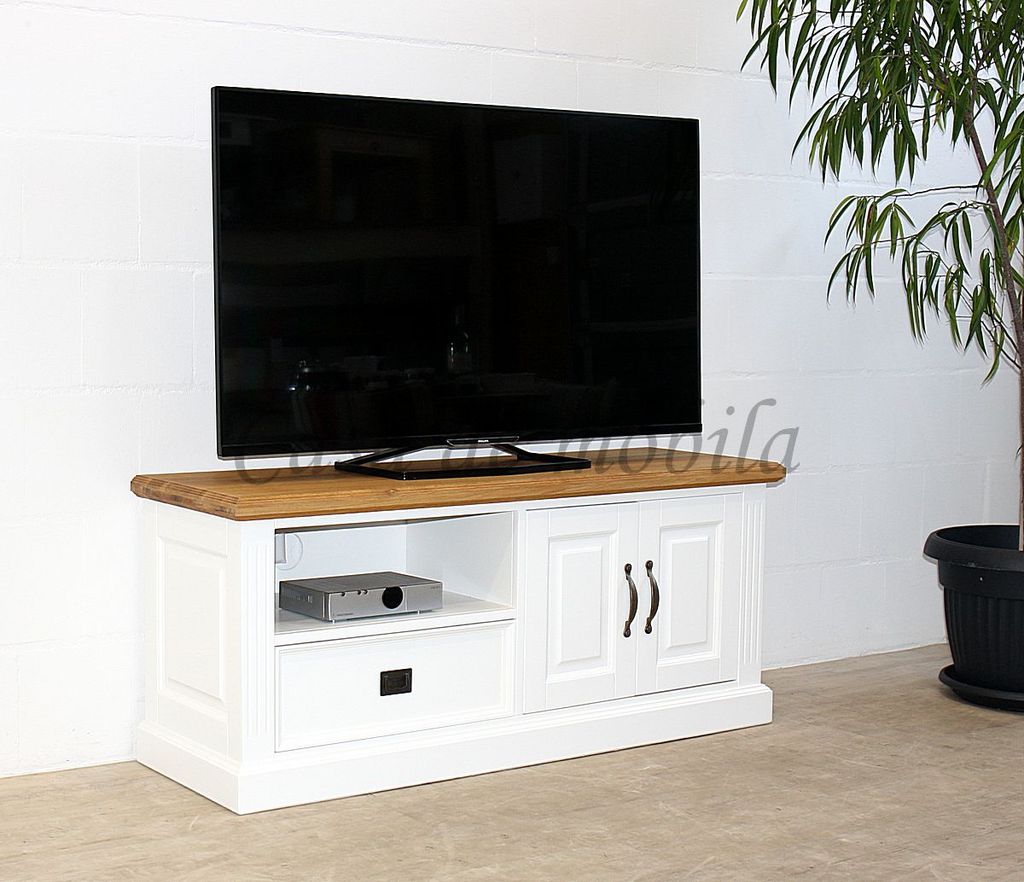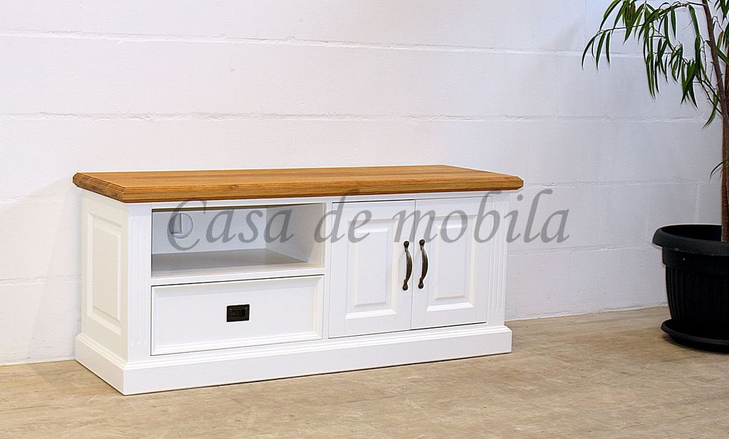 Fernsehkommode im Landhausstil - weiß lackiert mit Wildeiche