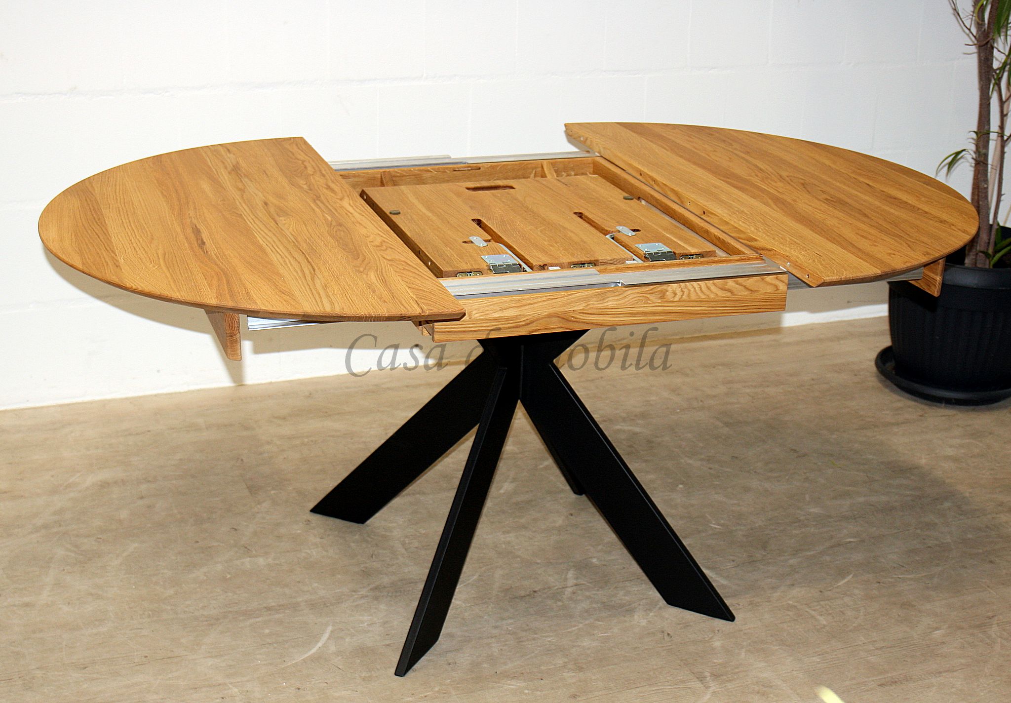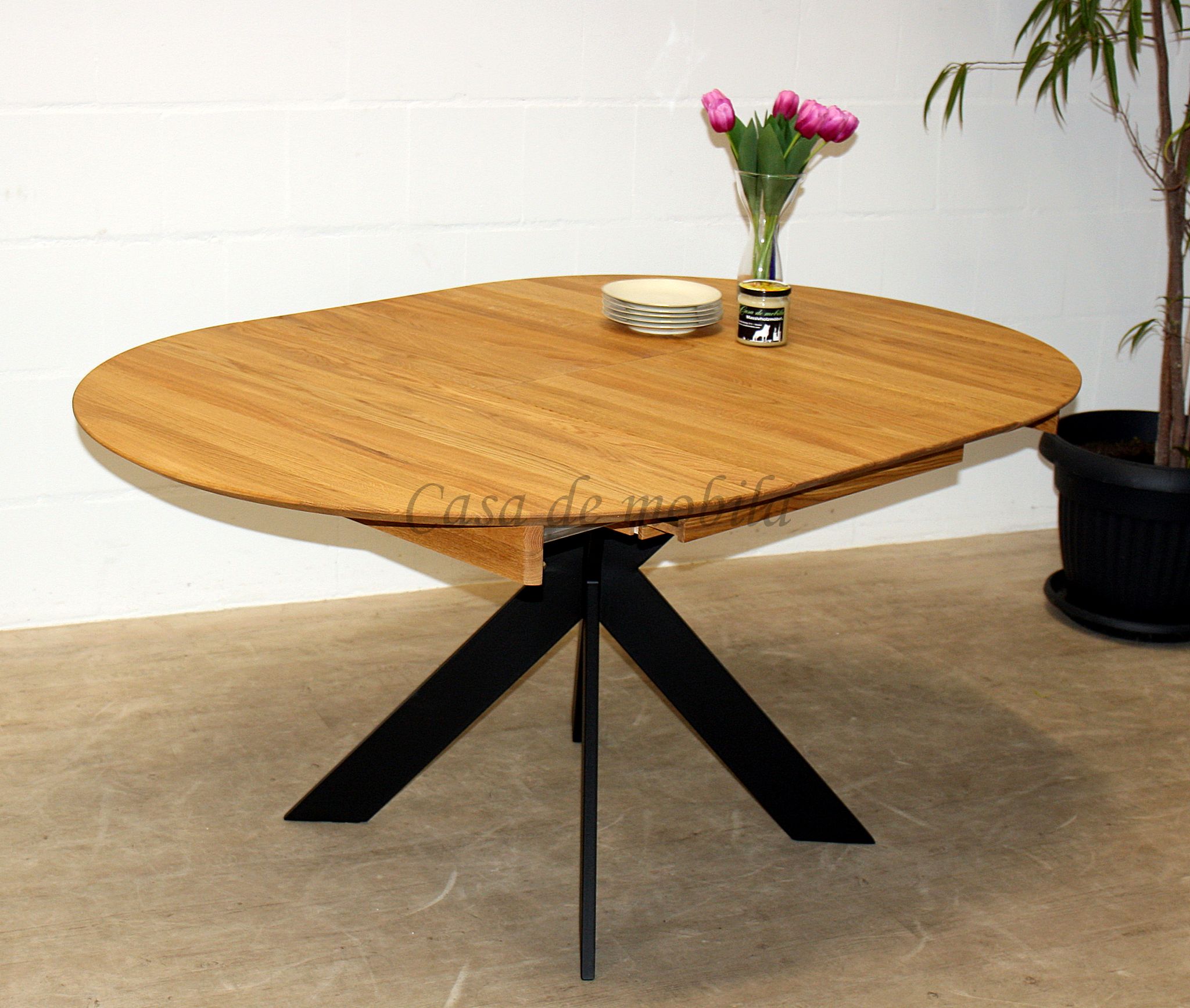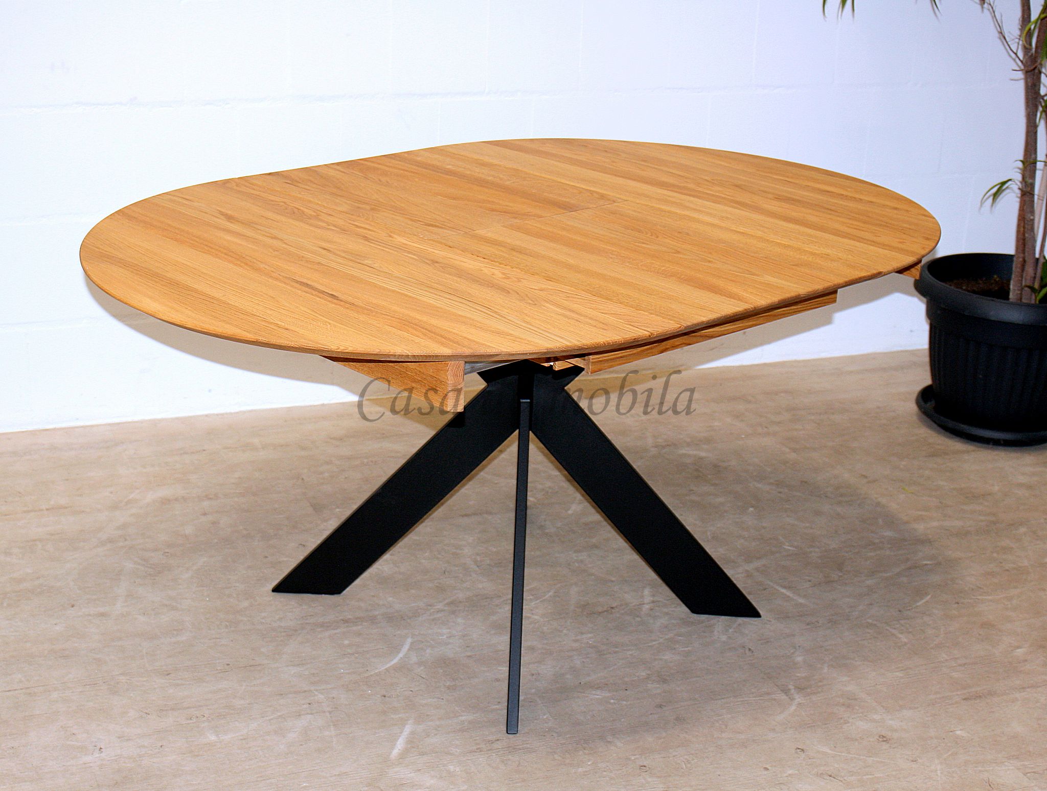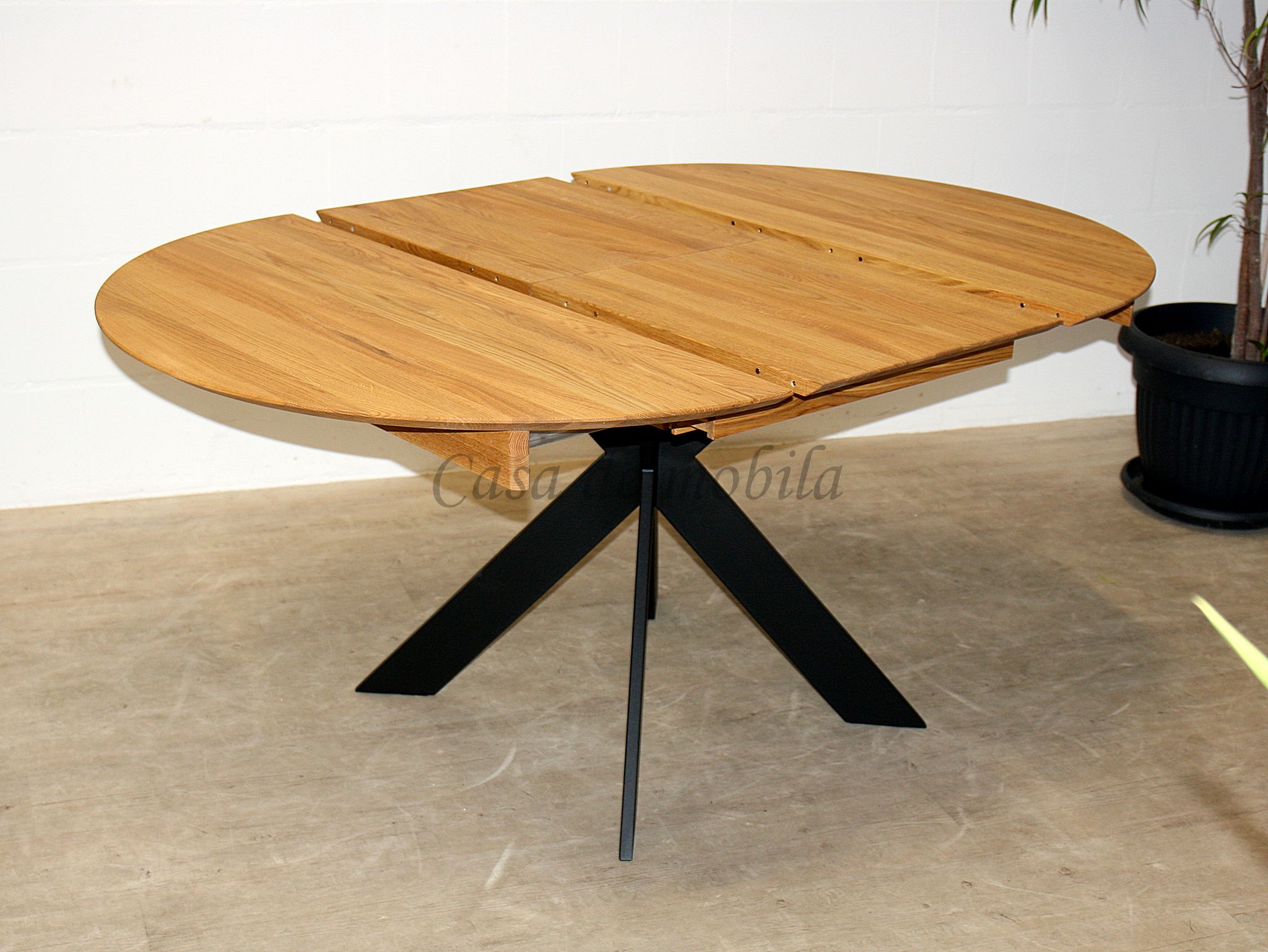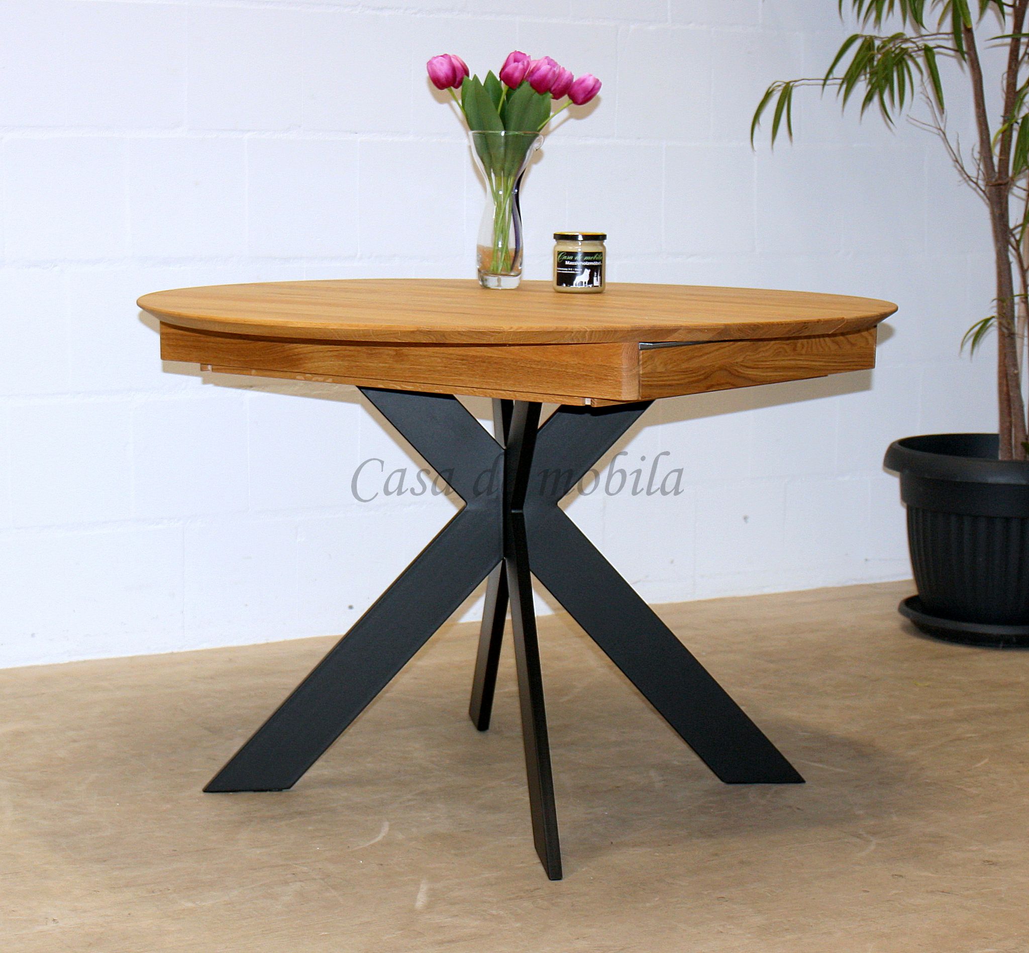 Massivholz Ausziehtisch rund mit Metallbeinen 115 cm Eiche massiv geölt