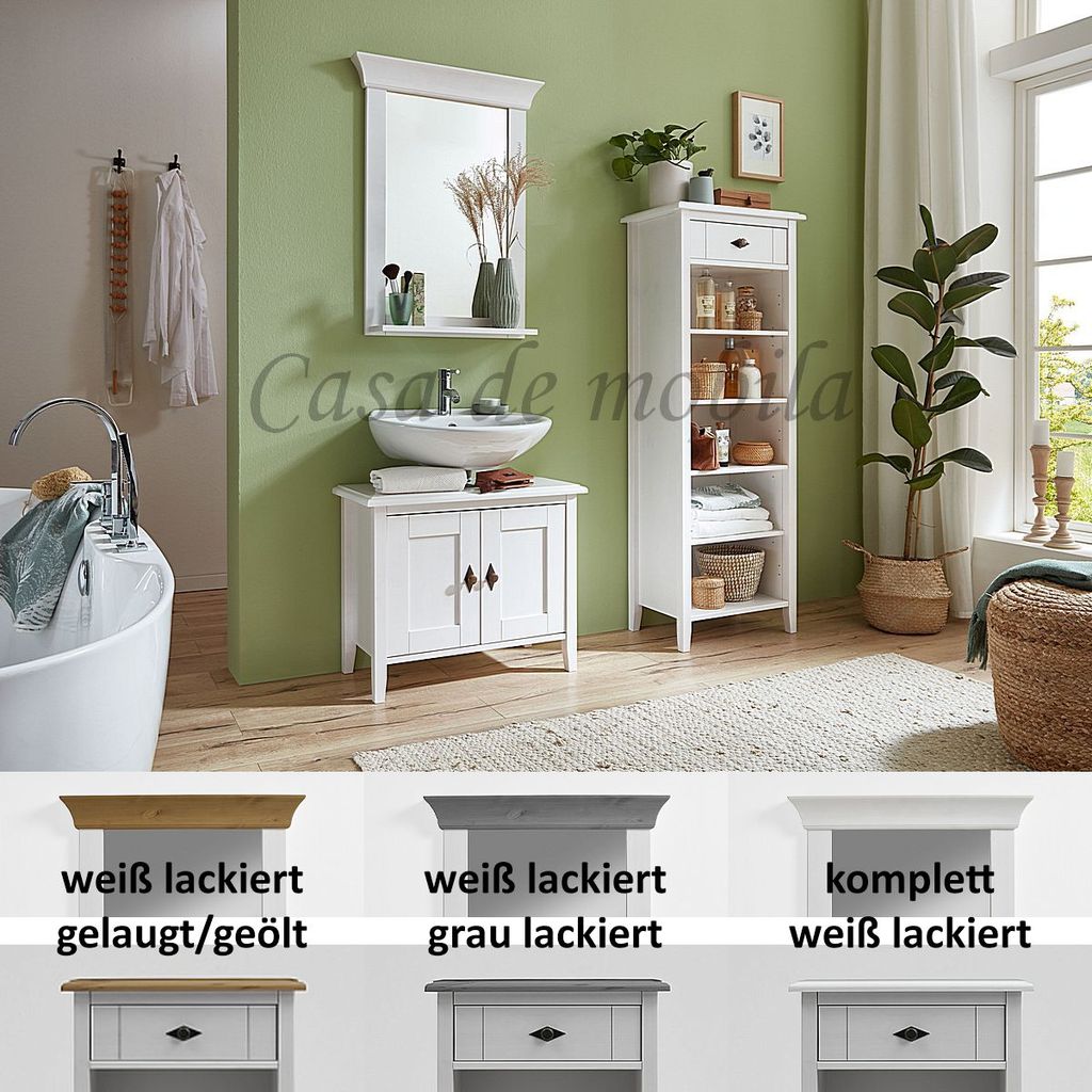 Badregal, Waschbeckenunterschrank und Badspiegel Kiefer massiv