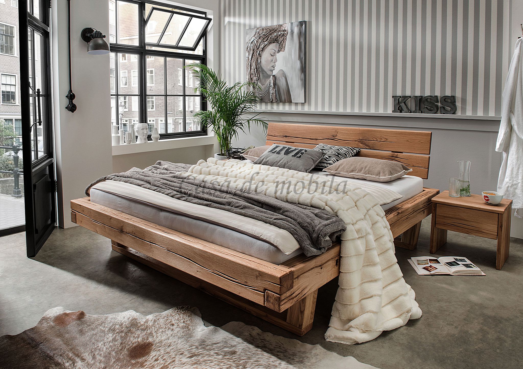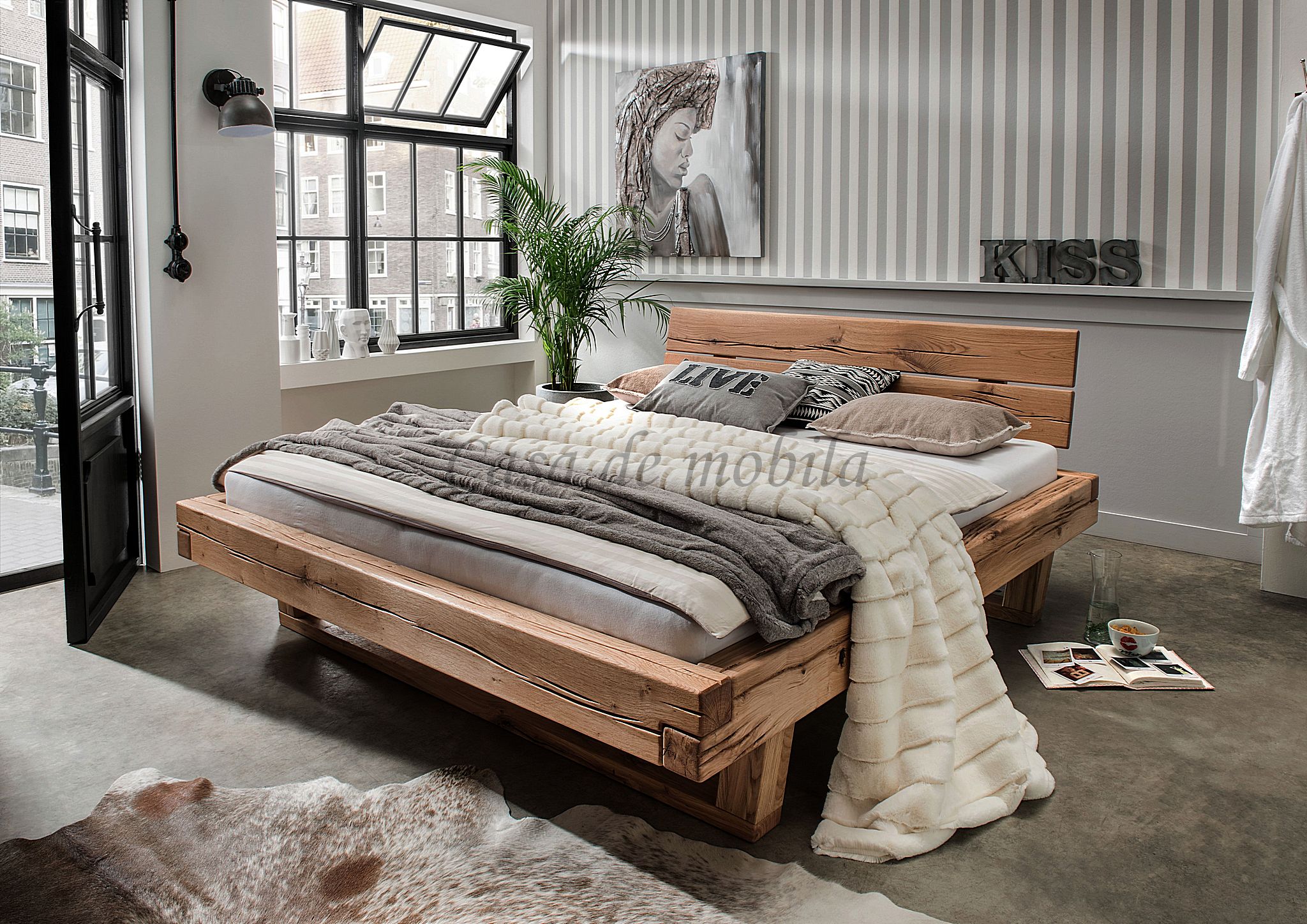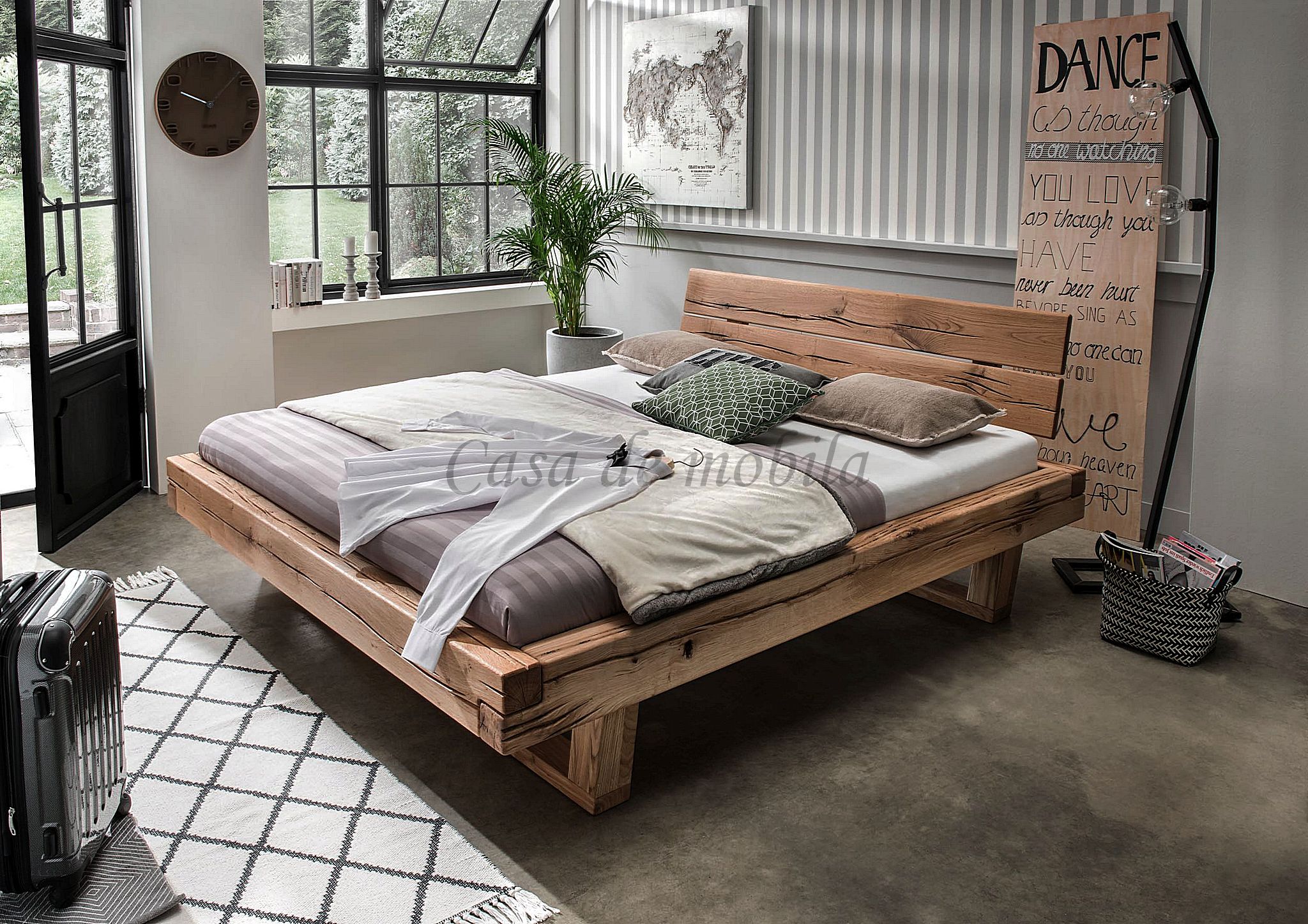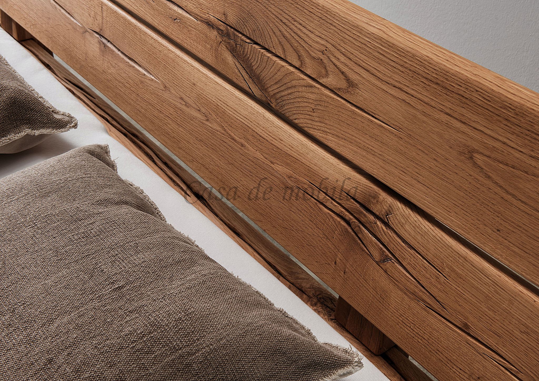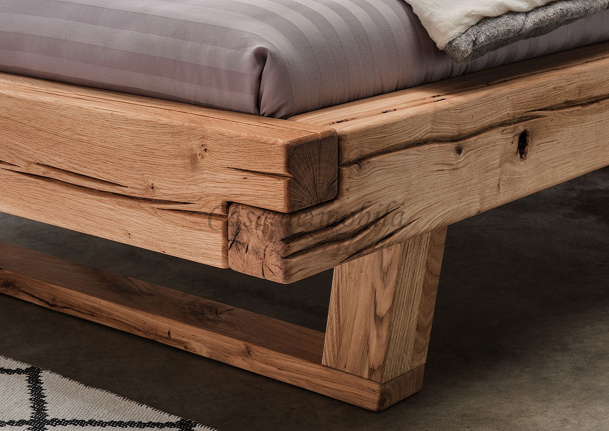 Dieses Balkenbett ist aus rustikalem Eichenholz gefertigt.