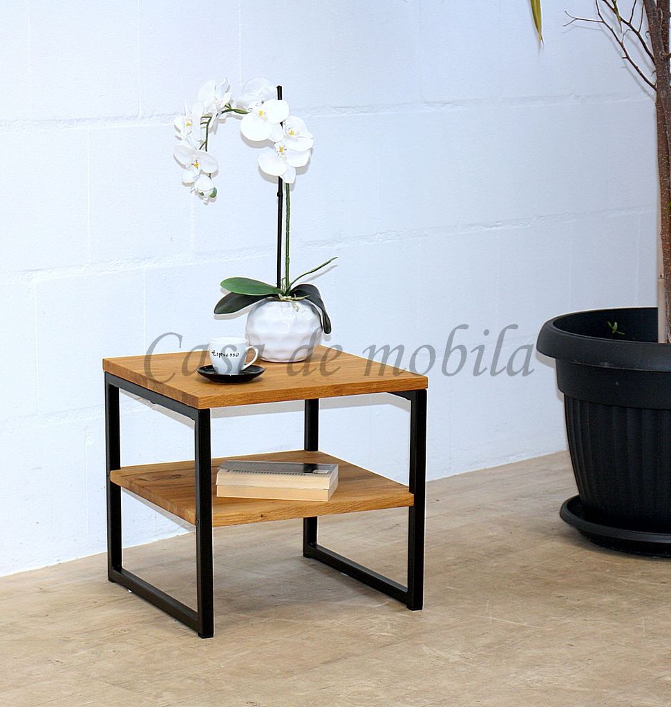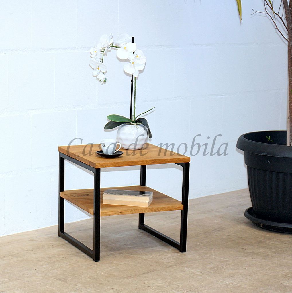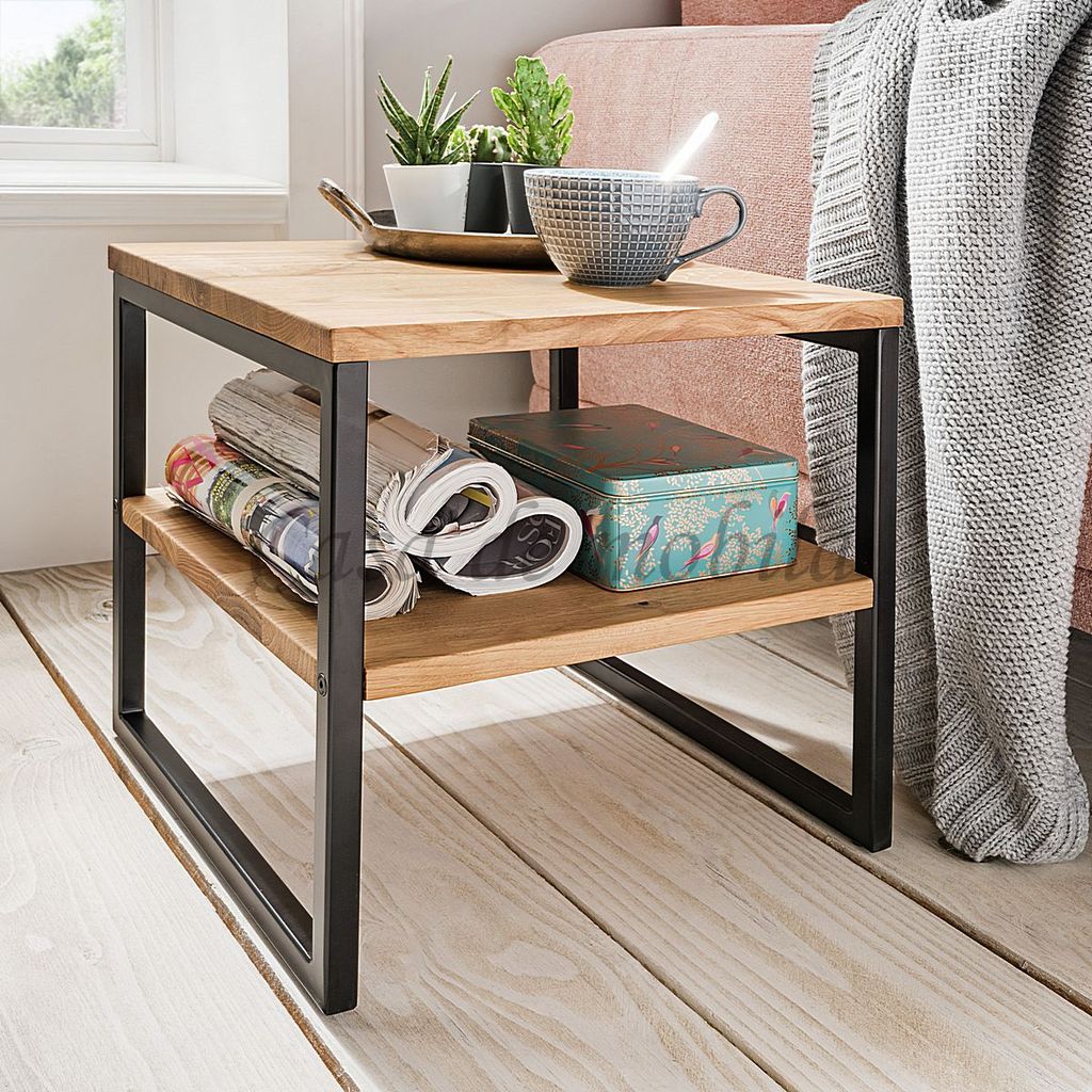 Beistelltisch LISSABON 40x38x40cm Wildeiche massiv natur geölt Schwarzstahl