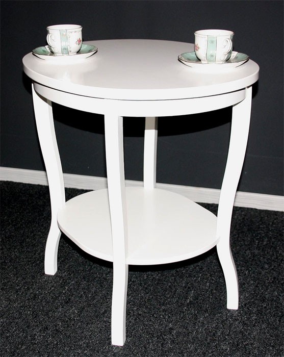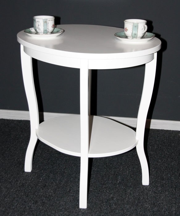 Beistelltisch oval 58x57x48cm VENEZIA Pappel massiv weiß lackiert 2. Wahl
