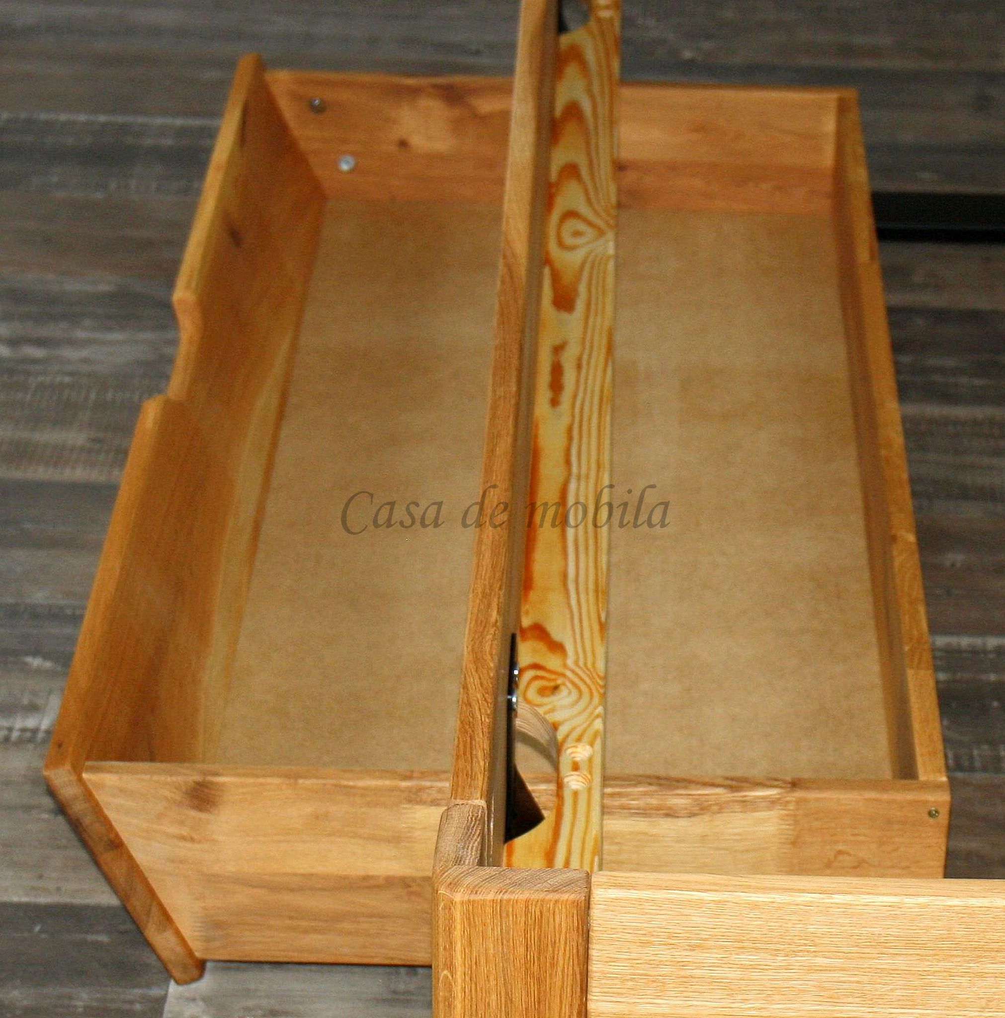 Die Schublade steht auf Rollen und es können 1 oder 2 Schubkästen unter das Schwebebett gestellt werden.