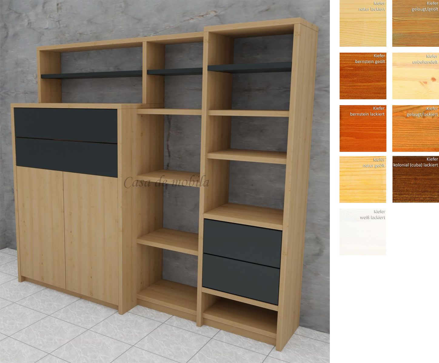 Der Wohnzimmerschrank CONTRA wird aus Kiefernholz geliefert. Es stehen verschiedene Oberflächenbehandlungen wie geölt, lackiert oder weiß zur Auswahl. Das Möbelstück wird in Dänemark aus Massivholz gefertigt.