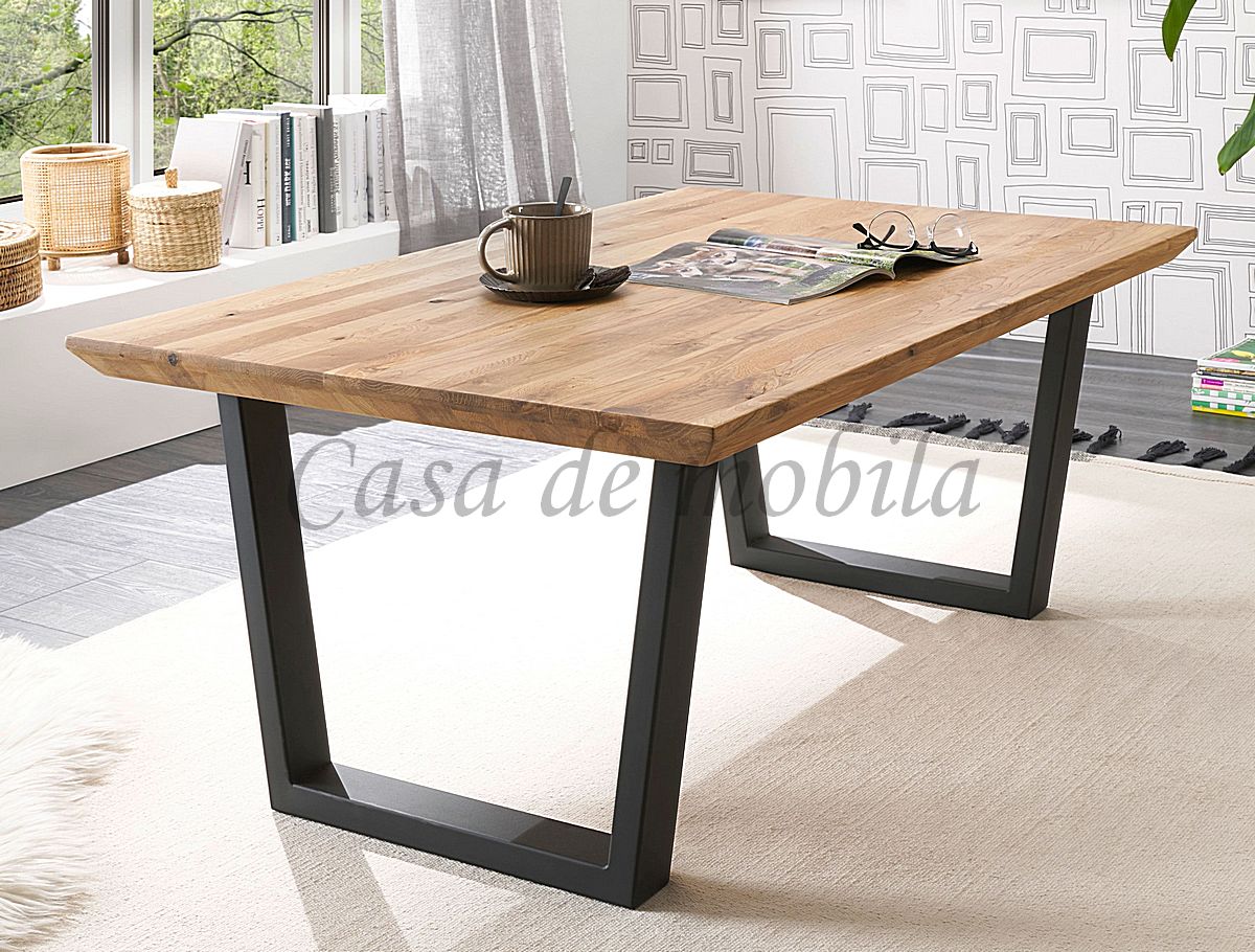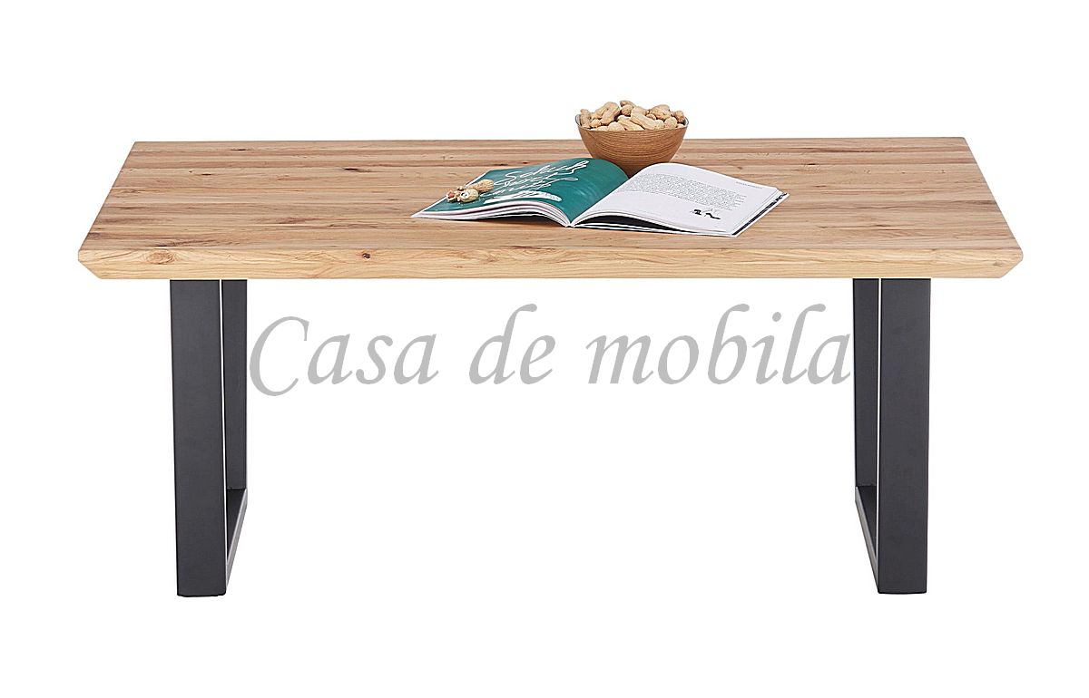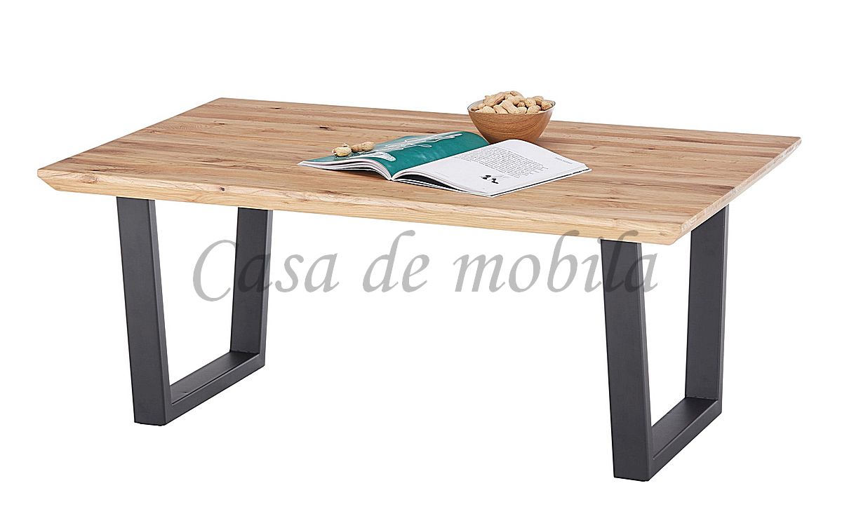Der Couchtisch Asola ist aus massiver Eiche gefertigt. Alle vier Seiten sind mit Schweizer Kante versehent. Die Oberfläche ist natur geölt. Das Tischgestell ist aus schwarzen Metall.