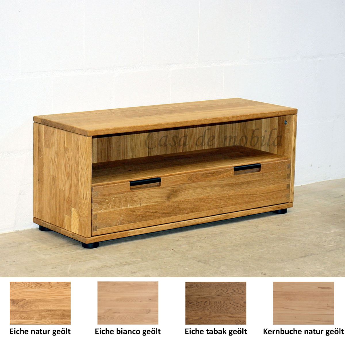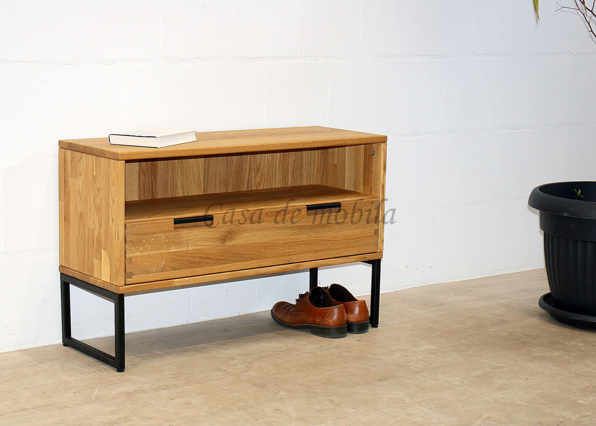 Sie kann mit der breiten Schublade und dem offenen Fach sowohl als Dielenbank im Flur als auch als TV-Lowboard im Wohnzimmer verwendet werden.