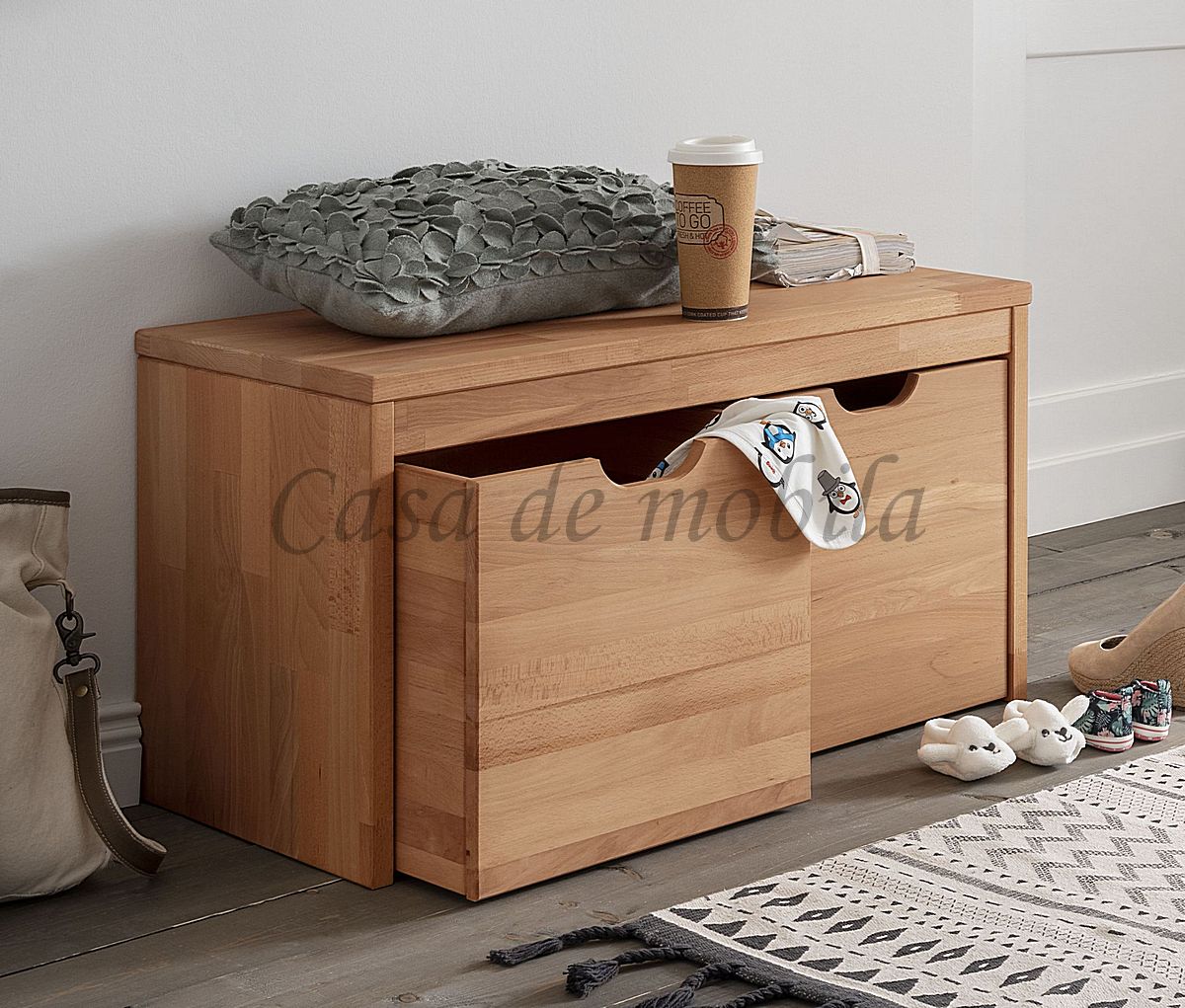 Die Dielenbank wird mit 2 Holz-Schubkästen ausgeliefert. Diese bieten viel Stauraum und können unter die Sitzbank geschoben werden.