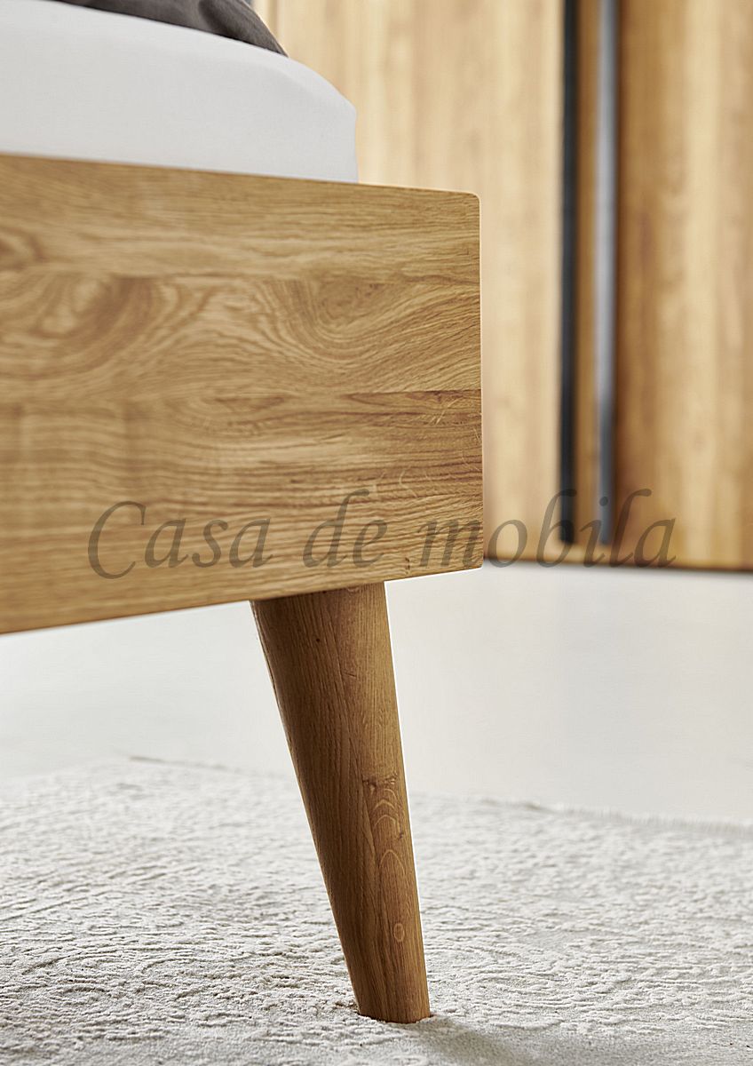 Das Doppelbett Modern Sleep vereint erstklassige Handwerkskunst mit einem modernen, stilvollen Design. Gefertigt aus massivem Holz – wahlweise in Kernbuche oder Wildeiche – bietet es sowohl Robustheit als auch Langlebigkeit. Die geölte, stabverleimte Oberfläche betont die natürliche Holzmaserung und verleiht dem Bett einen einzigartigen Charakter. Besonders ins Auge fällt das gepolsterte Kopfteil, das mit hochwertigem Kenia-Leder bezogen ist und in verschiedenen Farben erhältlich ist. Dieses verleiht dem Bett eine edle Optik und zusätzlichen Komfort. Die leicht schräg gesetzten Massivholzbeine sorgen für Stabilität und runden das moderne Design perfekt ab.