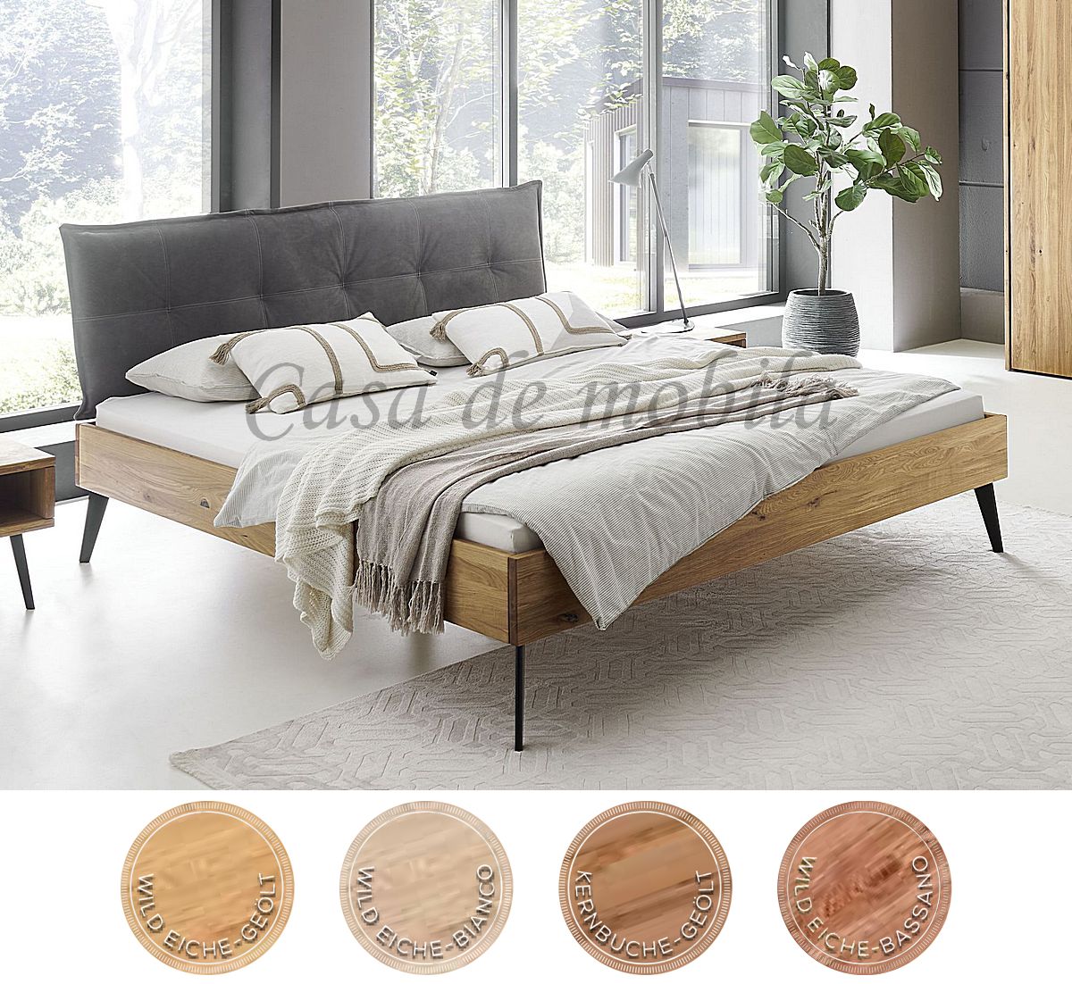 ⚠ Die Fotos zeigen die Ausführung 180x200 in Wildeiche natur geölt mit Kopfteil Anthrazit.