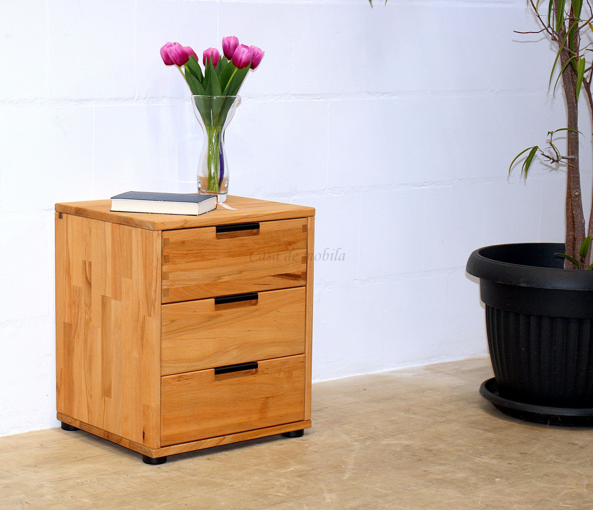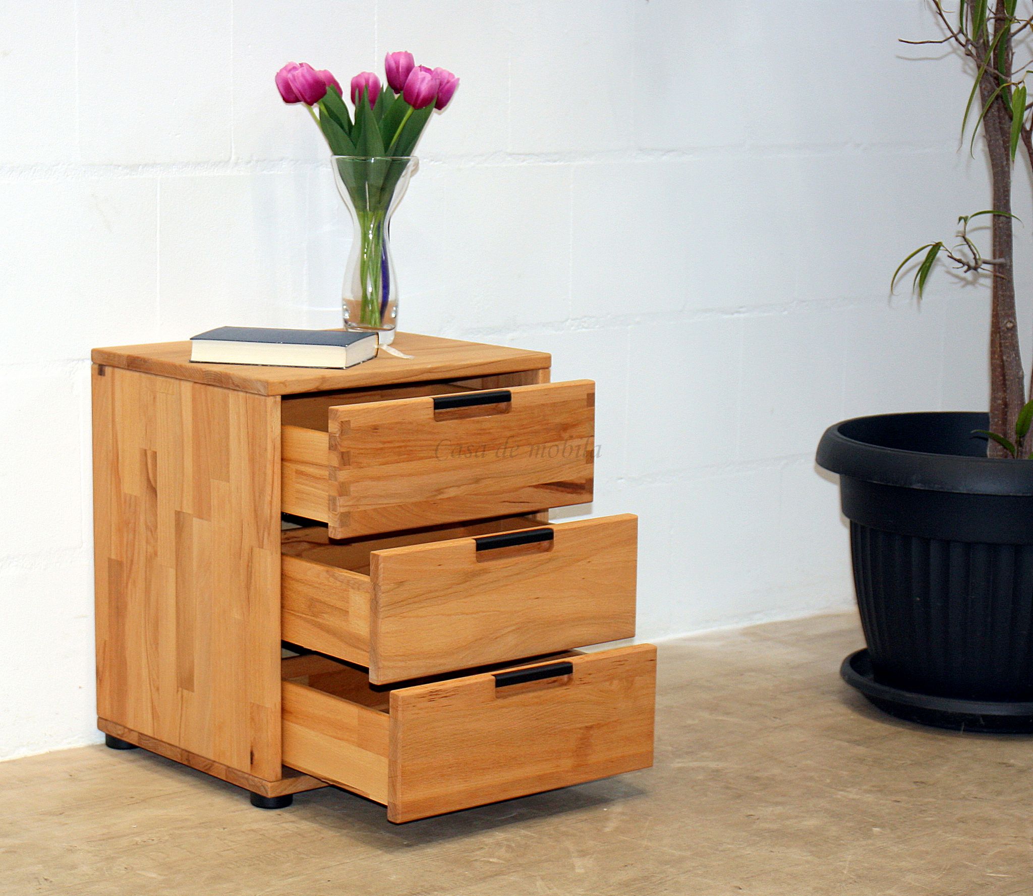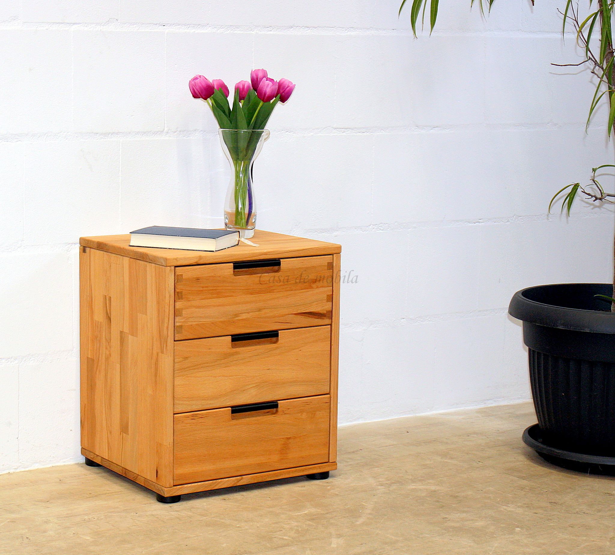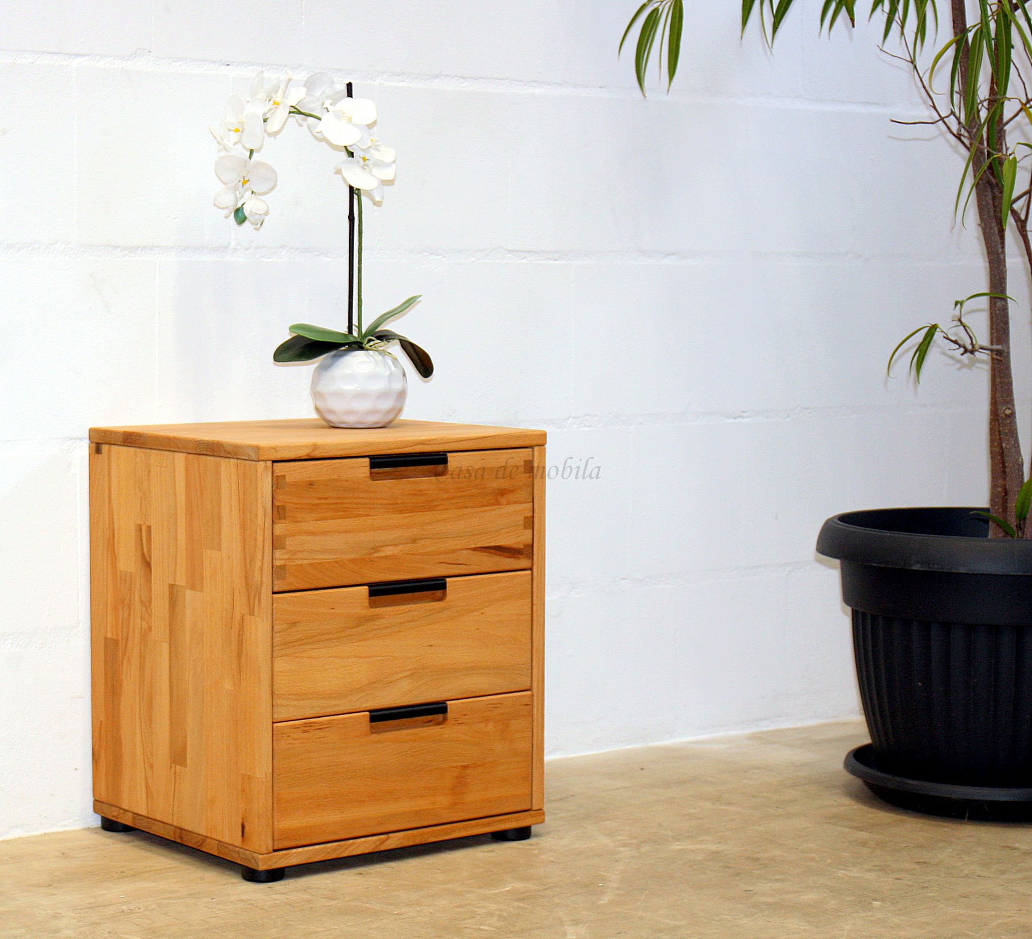 Die Oberfläche dieser Schubladenkommode ist aus massiver Buche gefertigt und hat eine geölte Oberfläche.