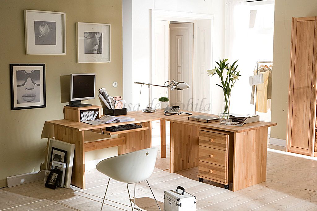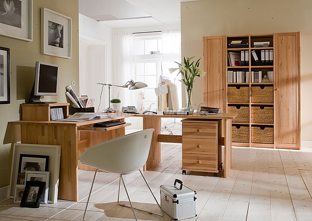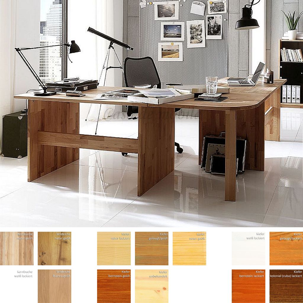Diese Massivholz-Büromöbel werden wahlweise aus Kiefer, Kernbuche oder Wildeiche gefertigt.