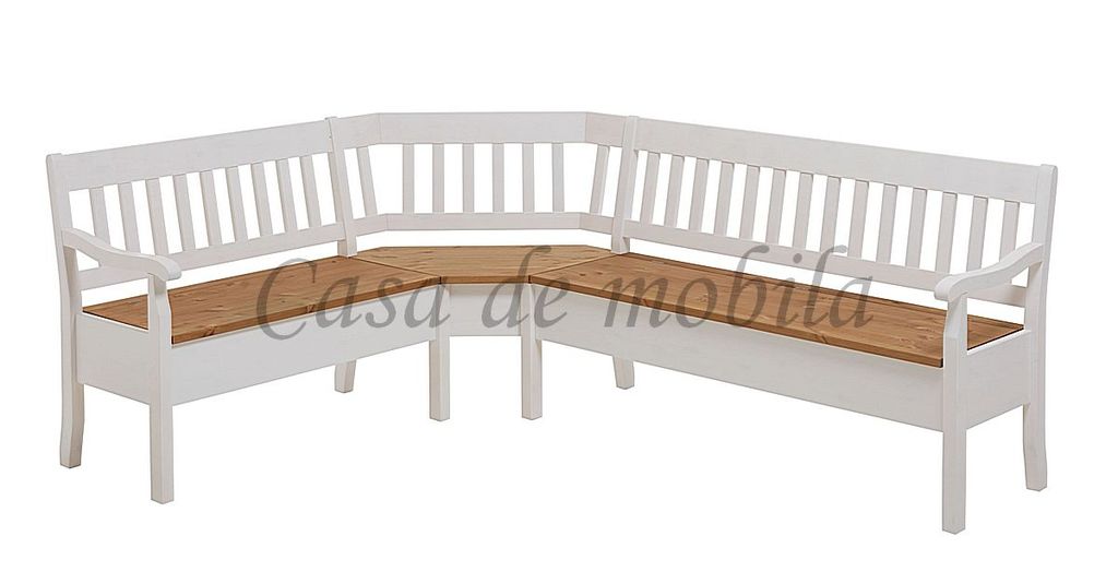 Diese Eck-Truhenbank ist aus massiver Kiefer gefertigt und wahlweise mit oder ohne Armlehnen erhältlich.