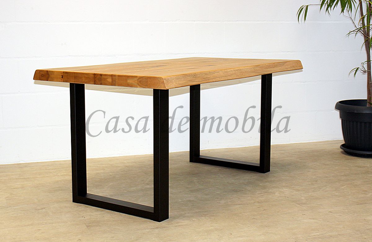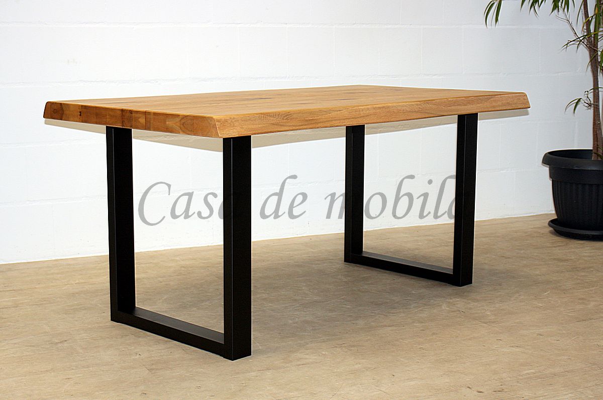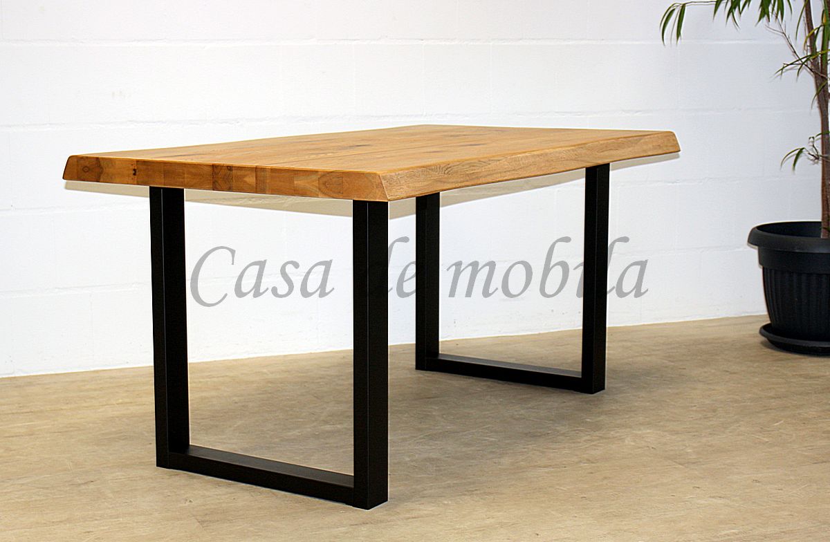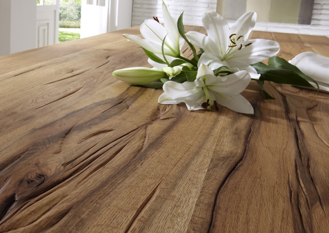 Die Tischplatte in 6 cm Stärke wird mit einer Baumkante ausgeliefert.