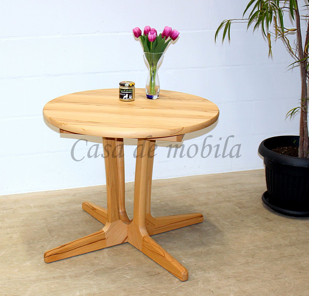 Der ausziehbare, runde Esstisch DORA vereint elegantes Design und Funktionalität. Gefertigt aus massivem Holz in Kernbuche, besticht der Tisch durch seine geölte Oberfläche, die den natürlichen Holzcharakter unterstreicht. Der Tisch wird in der Größe mit 90 cm Durchmesser erhältlich und lässt sich durch eine 60 cm breite Einlegeplatte erweitern. Mit einer Tischhöhe von 75 cm und einer stabilen 3 cm starken Tischplatte bietet er Flexibilität und Komfort für verschiedenste Anlässe.