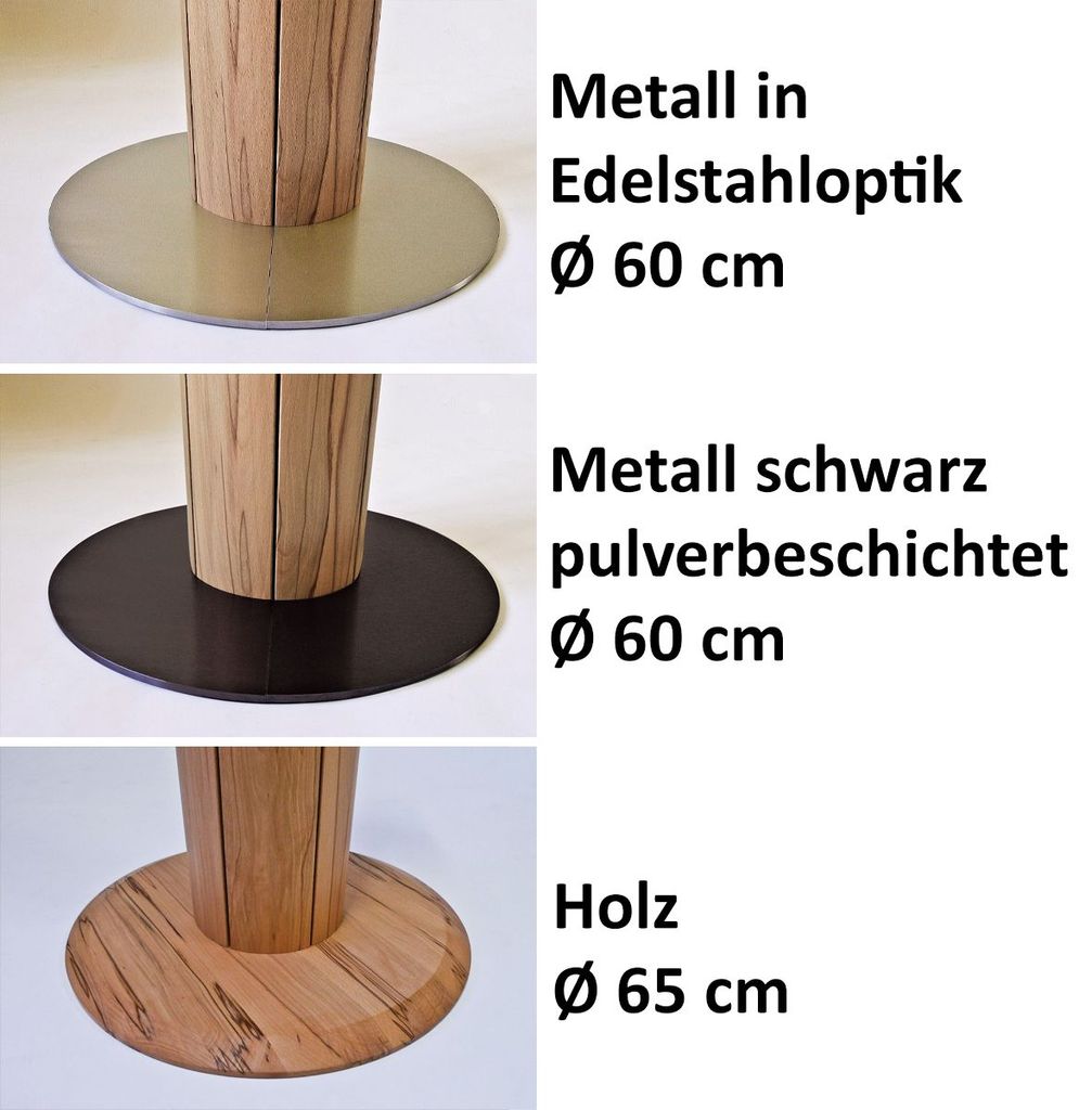 Der ausziehbare Esstisch BALI verbindet zeitloses Design mit Funktionalität und Vielseitigkeit. Er besteht aus massivem Holz, wählbar in den Varianten Kernbuche, Wildeiche oder Nussbaum, und hat eine naturgeölte Oberfläche, die den natürlichen Charakter des Holzes unterstreicht. Mit einem Durchmesser von 110 oder 120 cm lässt sich der Tisch um 50 cm erweitern, um Platz für Gäste zu schaffen. Die robuste Tischplatte ist 2 cm stark, und das Gestell kann je nach Vorliebe in Edelstahloptik, schwarz pulverbeschichtetem Metall oder Holz gewählt werden.