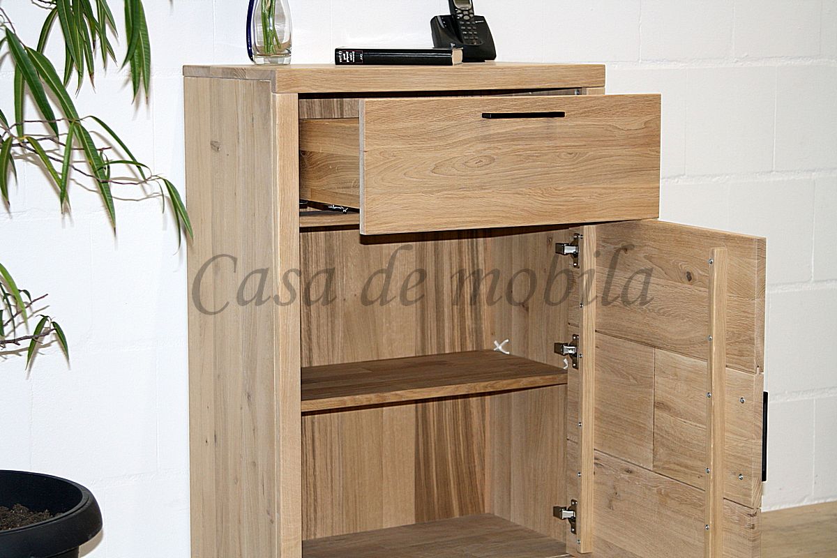 Begrüßen Sie Ihre Gäste mit Stil: Die Flurkommode WINDSOR aus massiver Eiche ist ein echtes Schmuckstück für jeden Eingangsbereich. Die geölte Oberfläche ist in zwei Varianten erhältlich – naturnah oder mit leichtem Bianco-Effekt.