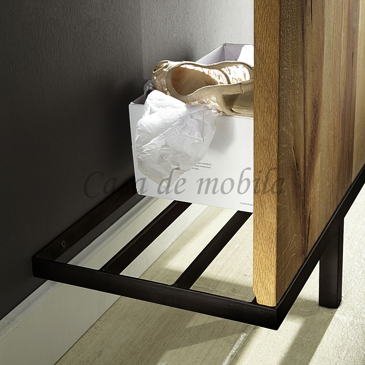 • mit Kleiderstange, sowie oben 3 Haken und unten 4 Haken und Schuhrost