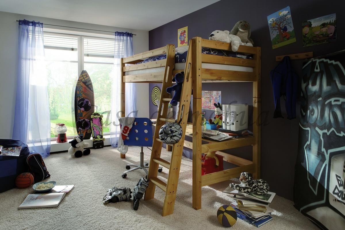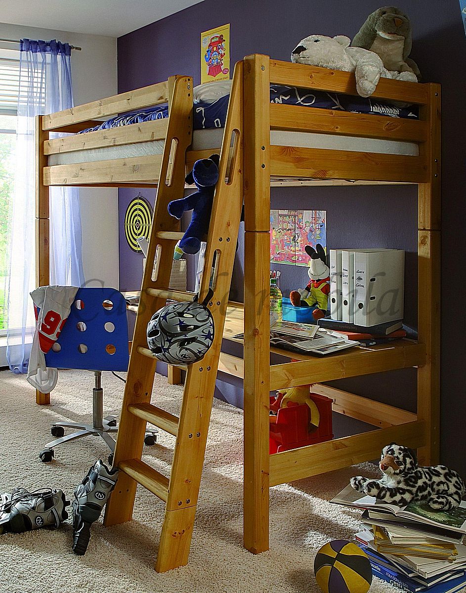 Dieses Hochbett ist aus massiver Kiefer gefertigt.