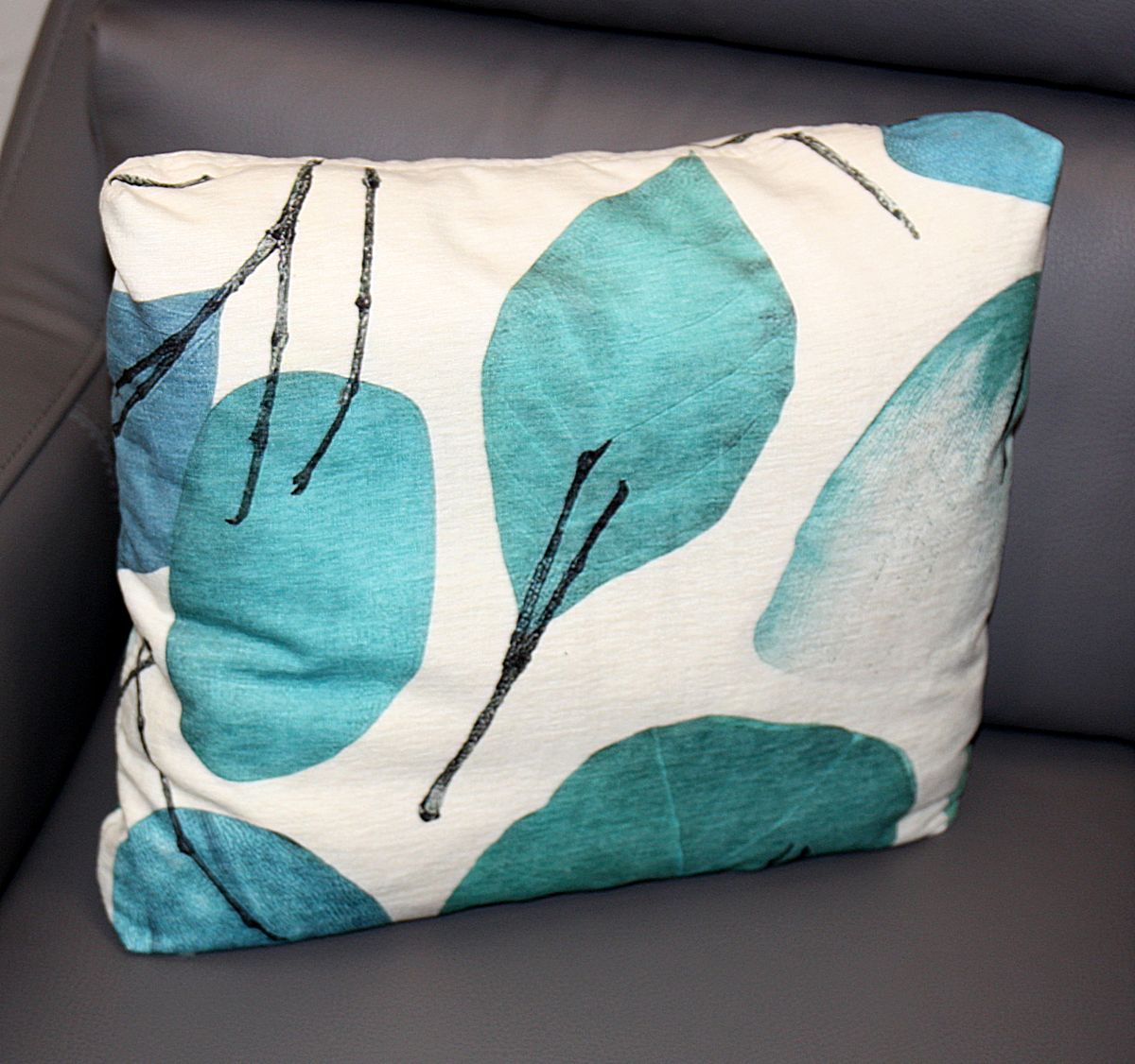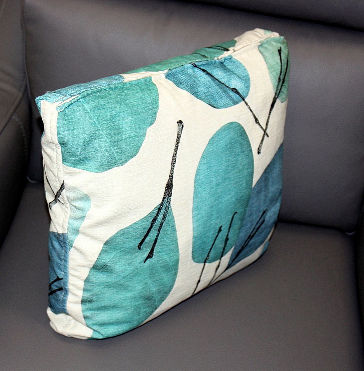 FAMA-Kissen 42x38cm Blätter, Albero 01, blau, petrol, türkis, FAMA
