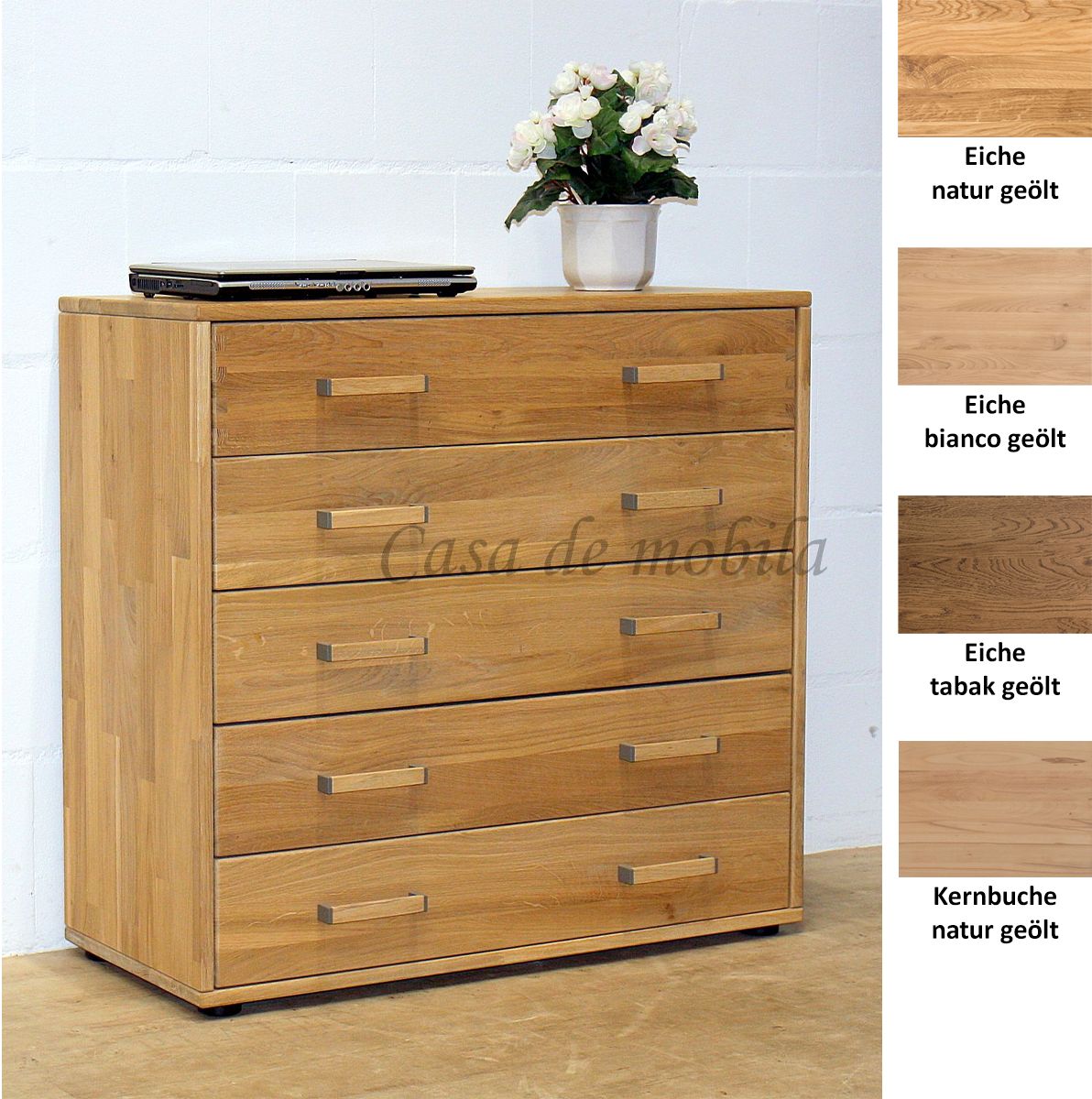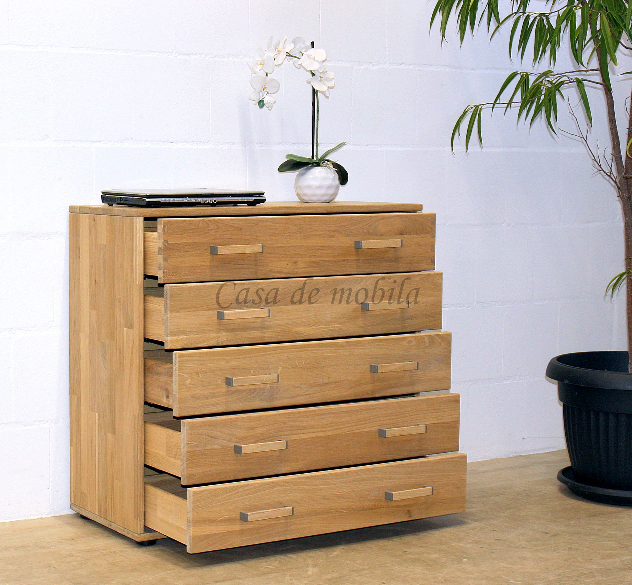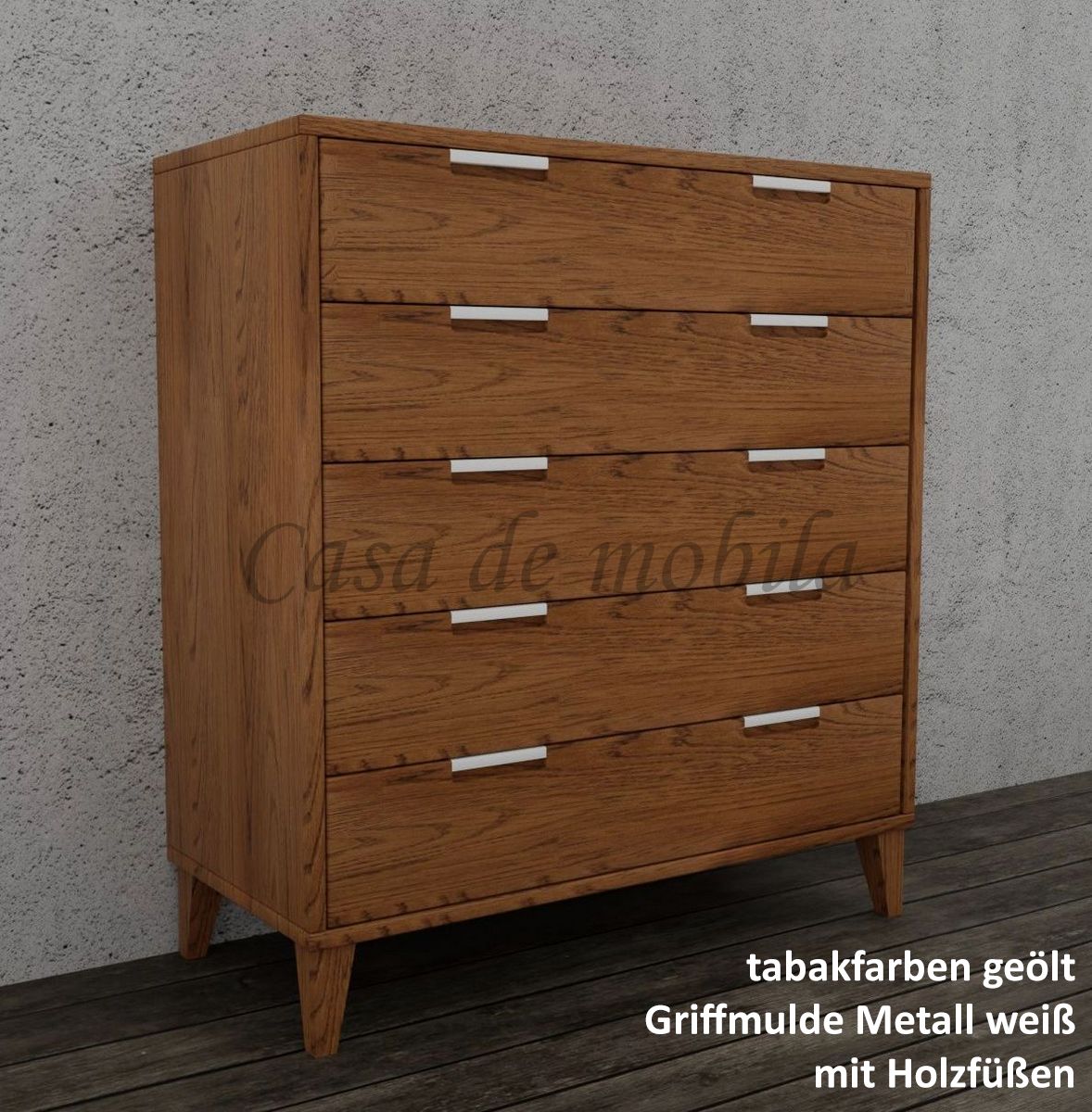 Sie ist mit den fünf breiten Schubladen ein perfektes Möbelstück für Schlafzimmer, Wohnzimmer, Diele und Flur.