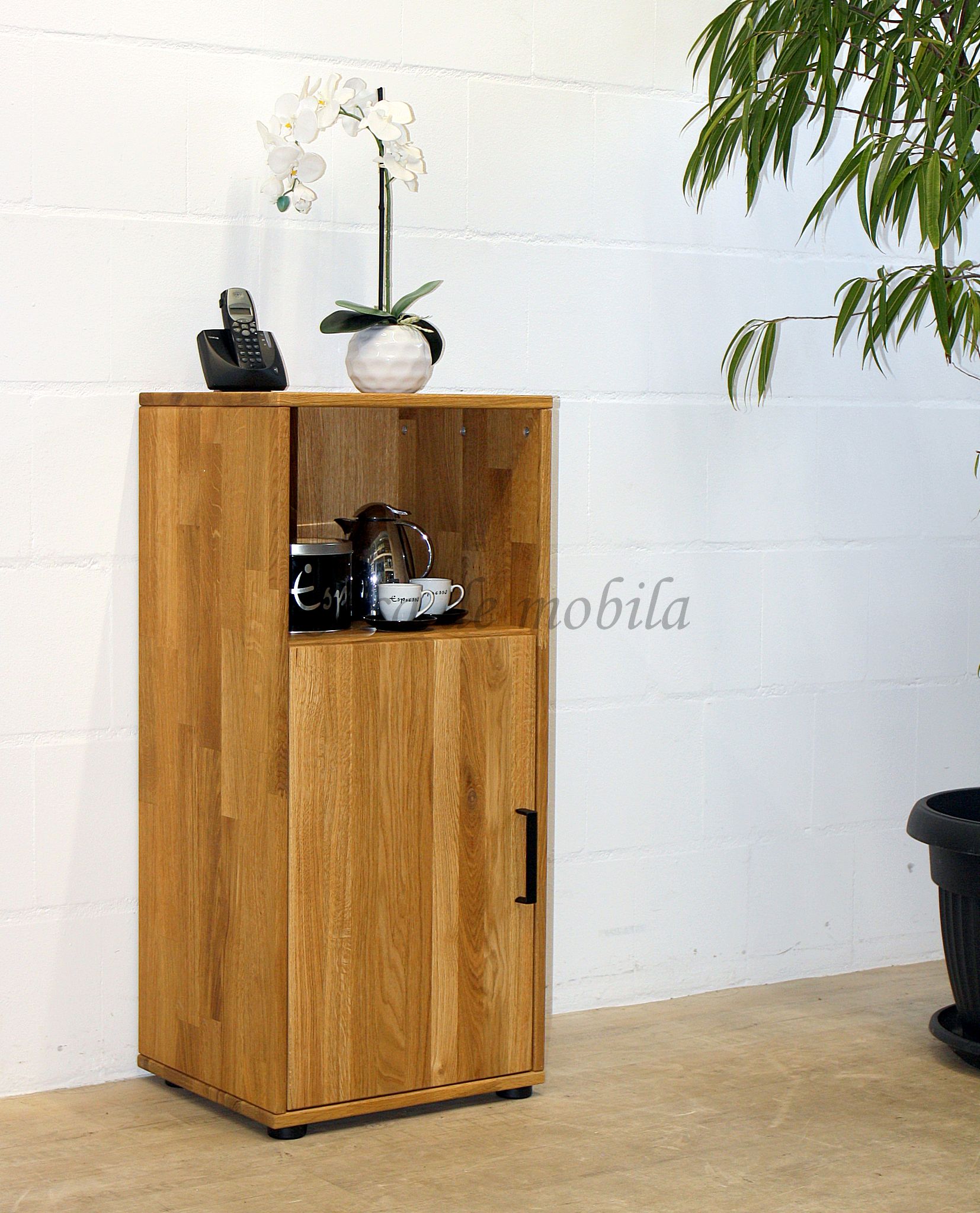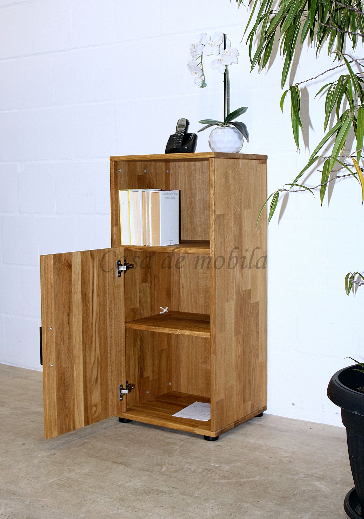 Sie ist mit der Holztür und dem offenen Fach ein perfektes Möbelstück für Büro, Arbeitszimmer, Wohnzimmer, Diele und Flur.