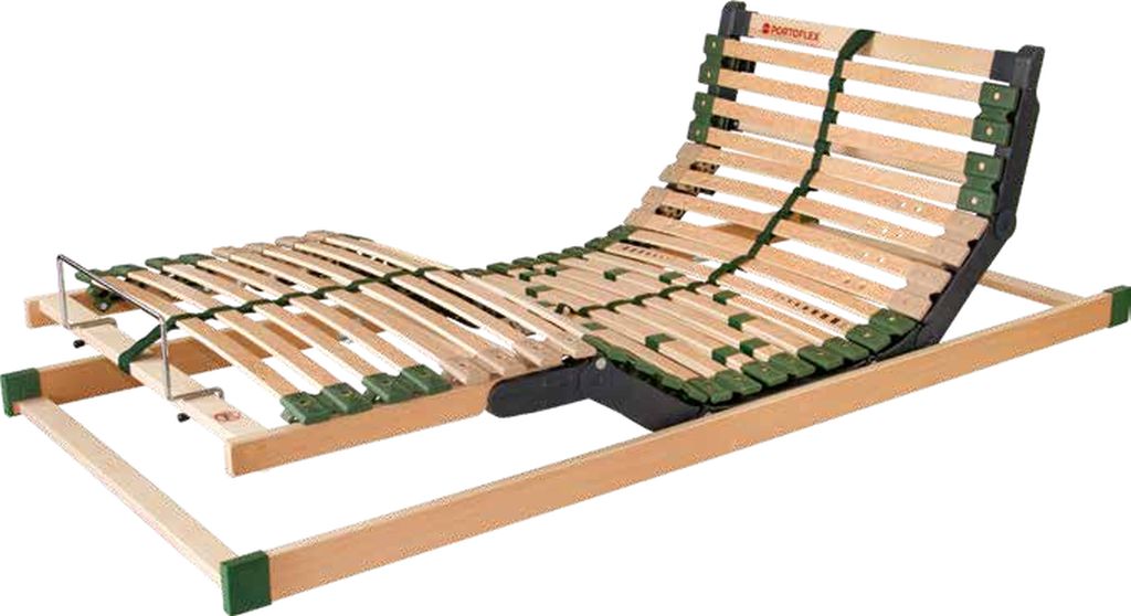 Der Lattenrost Portoflex der tschechischen Firma AHORN hat in der hier angebotenen Ausführung mit elektrischer Verstellung 28 flexibel gelagerte Federleisten mit 7 Zonen.