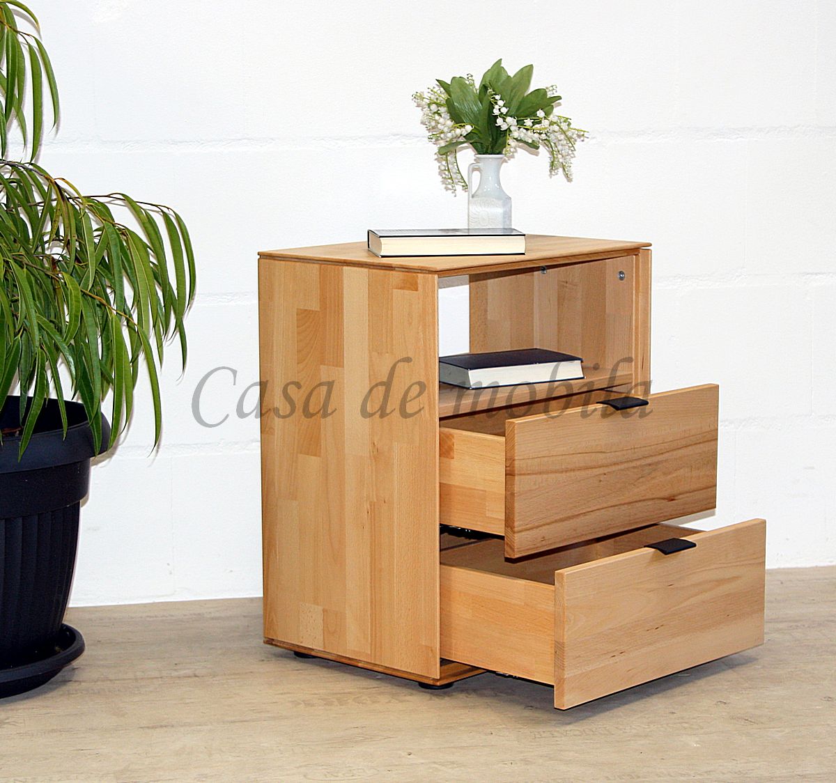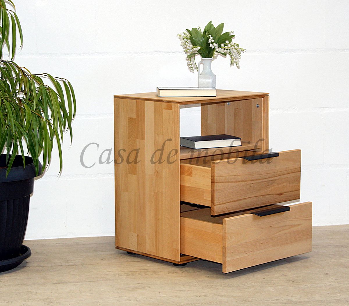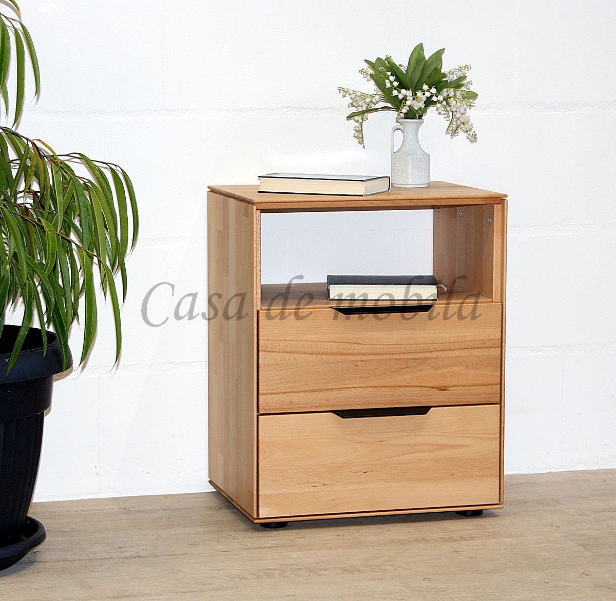 Massivholz Nachtschrank mit 2 Schubladen Buche