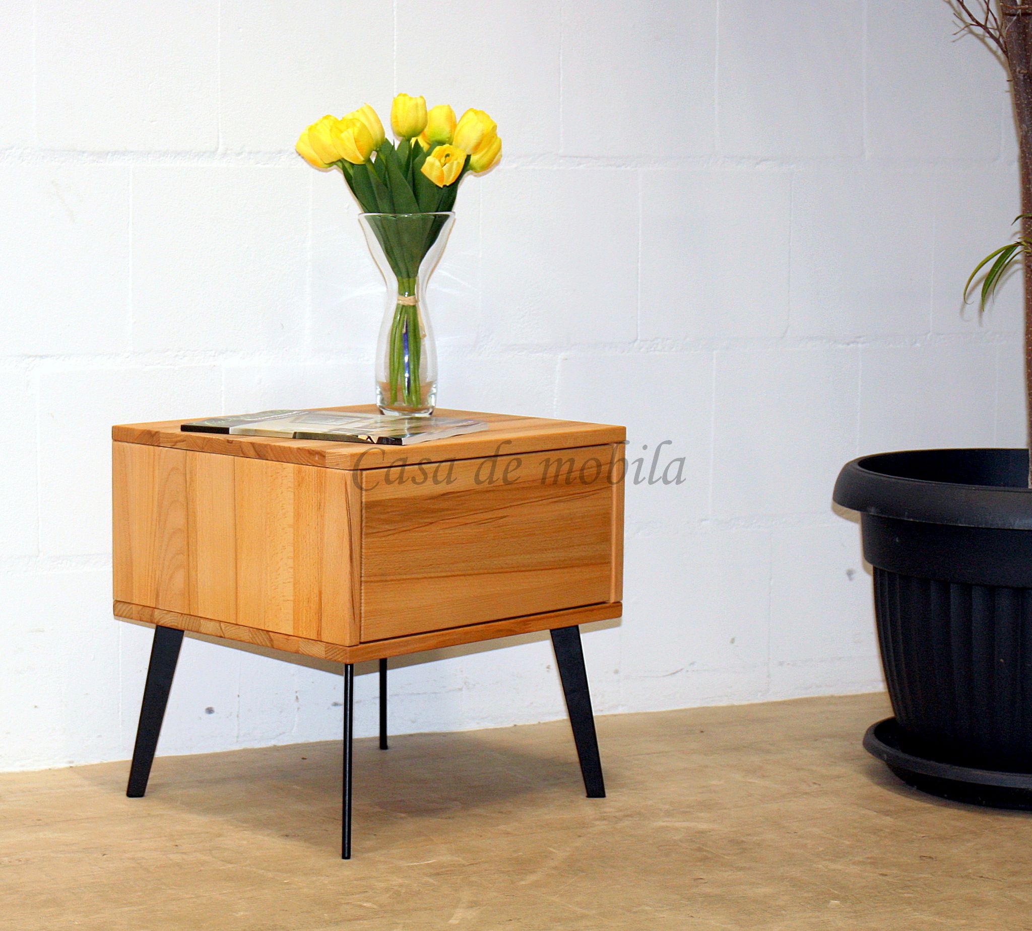 Diese Nachtkommode aus dem Dielenprogramm WALK IN vom dänischen Hersteller Tjørnbo ist aus massivem Buchenholz oder Eichenholz gefertigt. Die Oberfläche ist wahlweise natur oder bianco geölt und optional sandgestrahlt.