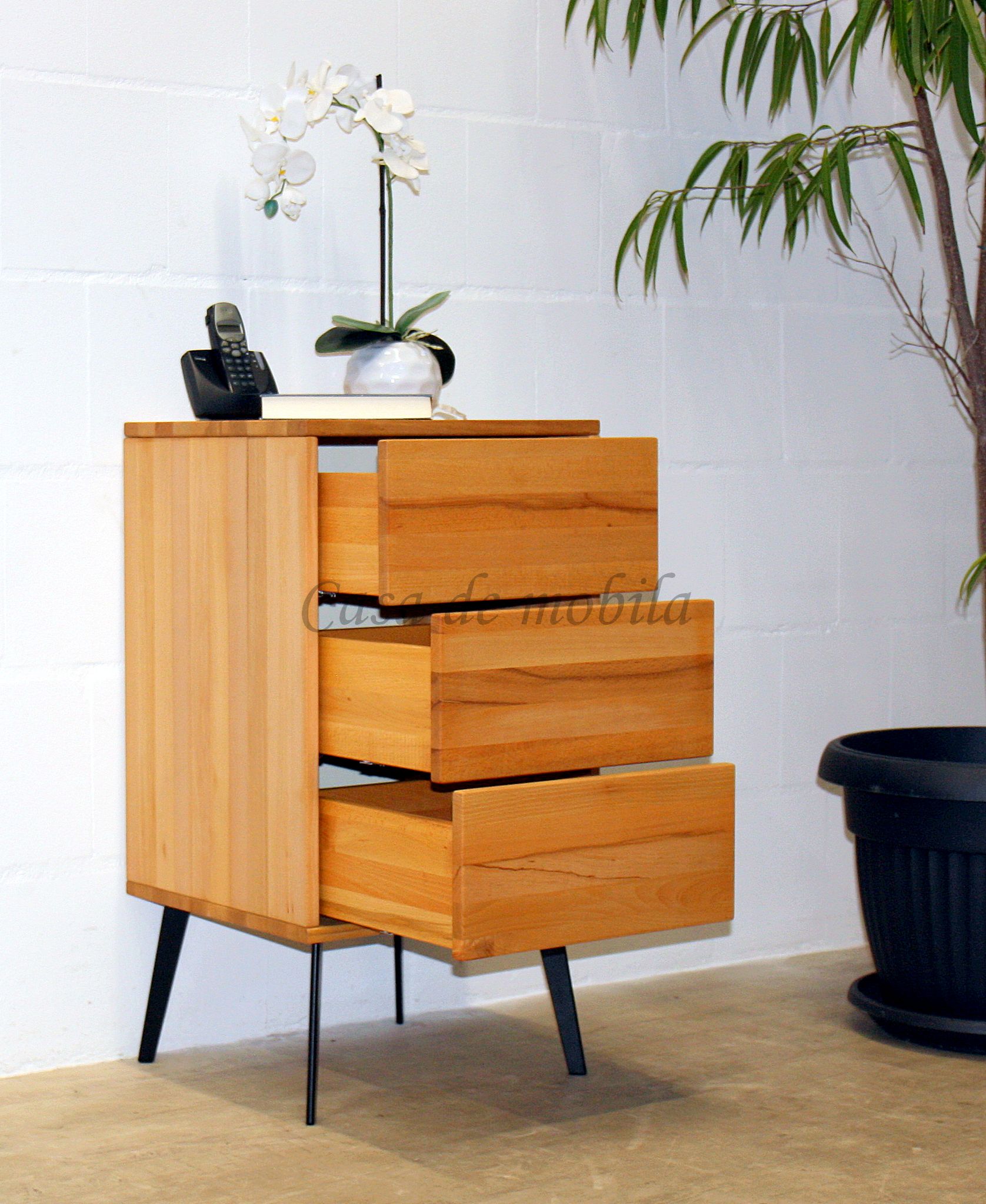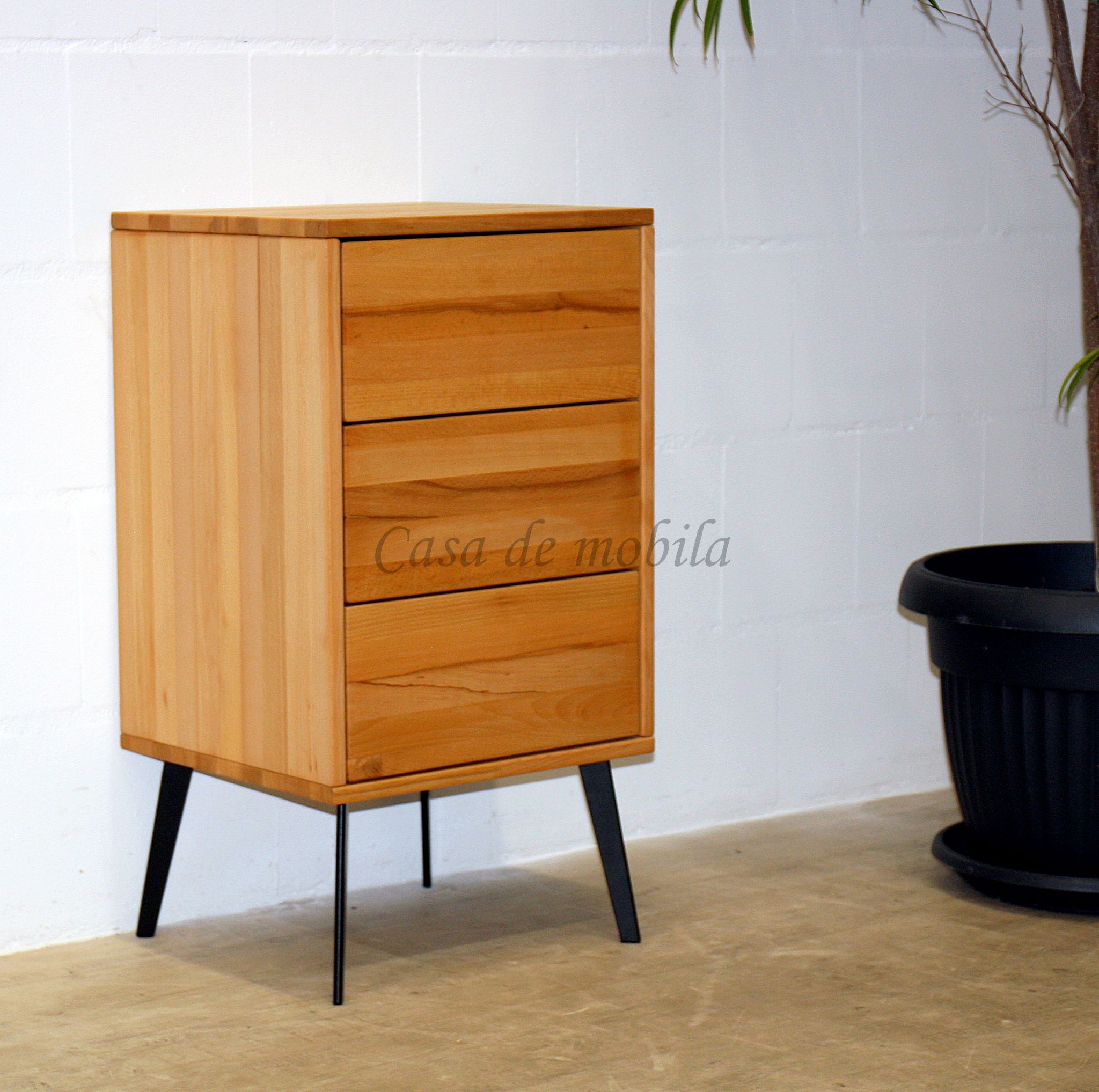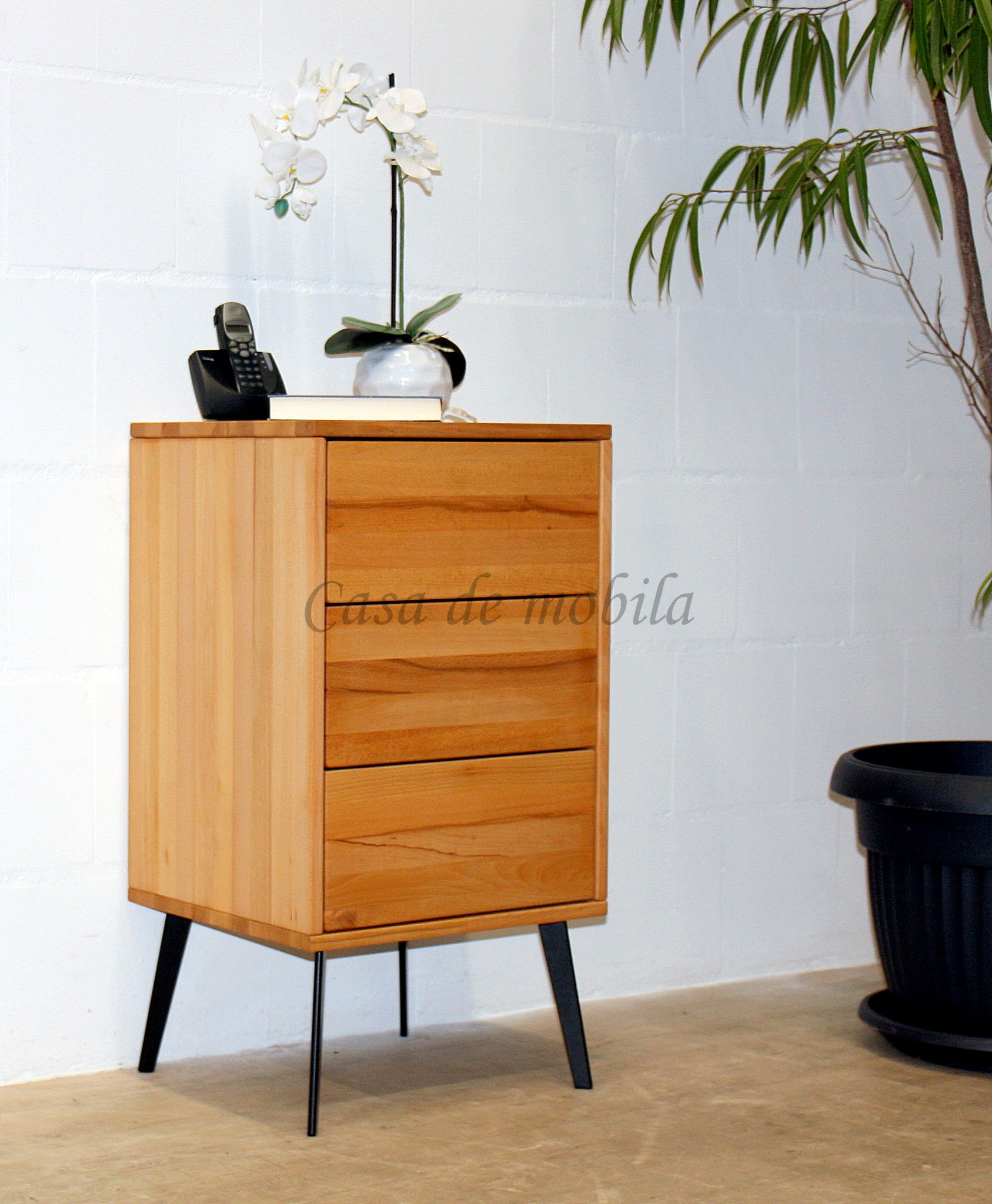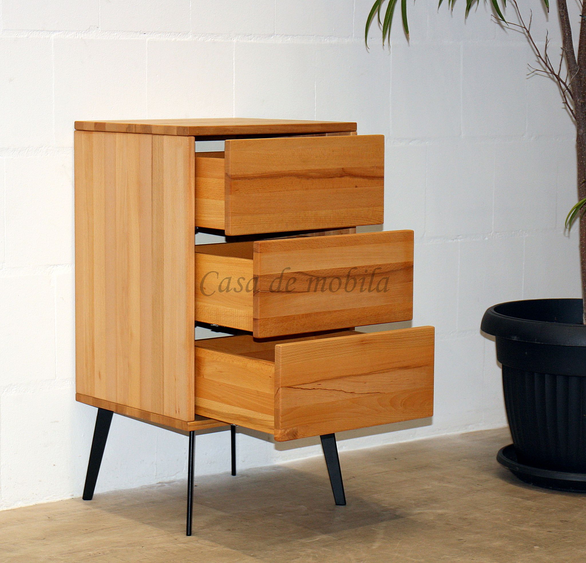 Nachtkommode mit Schubladen und Metallfüßen M 3, Kernbuche massiv geölt