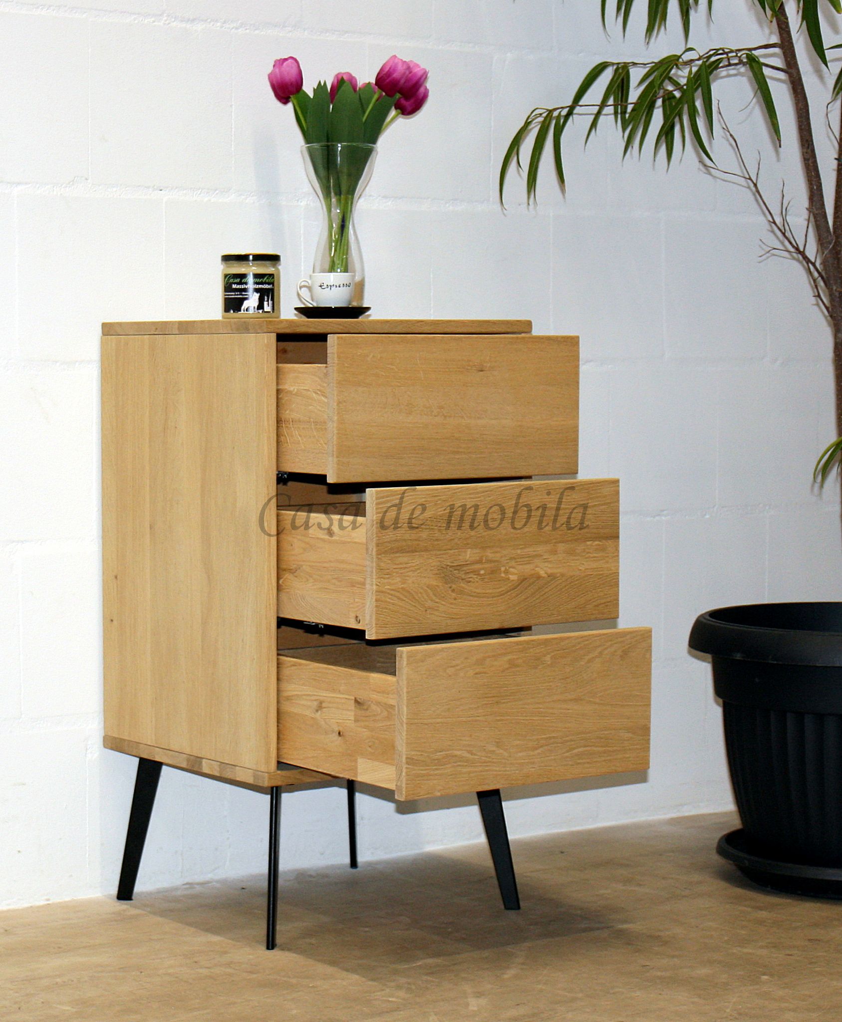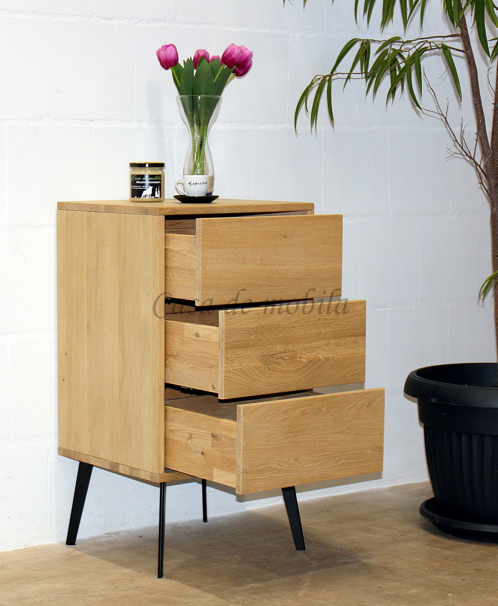 Diese Nachtkommode aus dem Dielenprogramm WALK IN vom dänischen Hersteller Tjørnbo ist aus massivem Eichenholz gefertigt. Die Oberfläche ist wahlweise natur oder bianco geölt und optional sandgestrahlt.