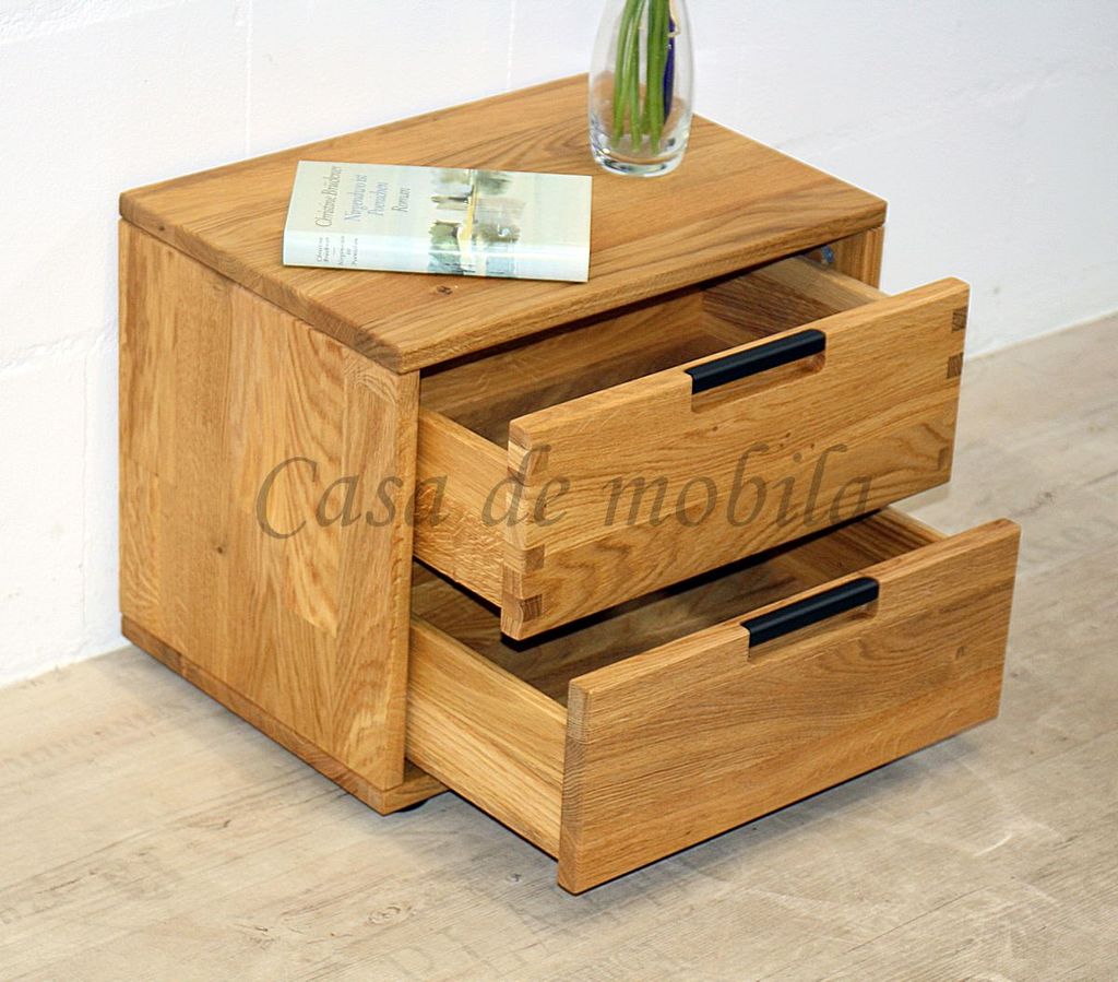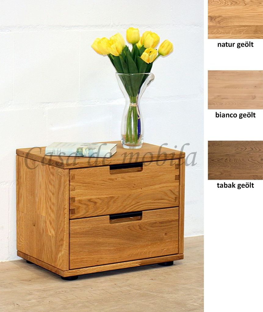 Echtholz Nachtschrank aus Eichenholz natur, weiß oder nussbaumfarben
