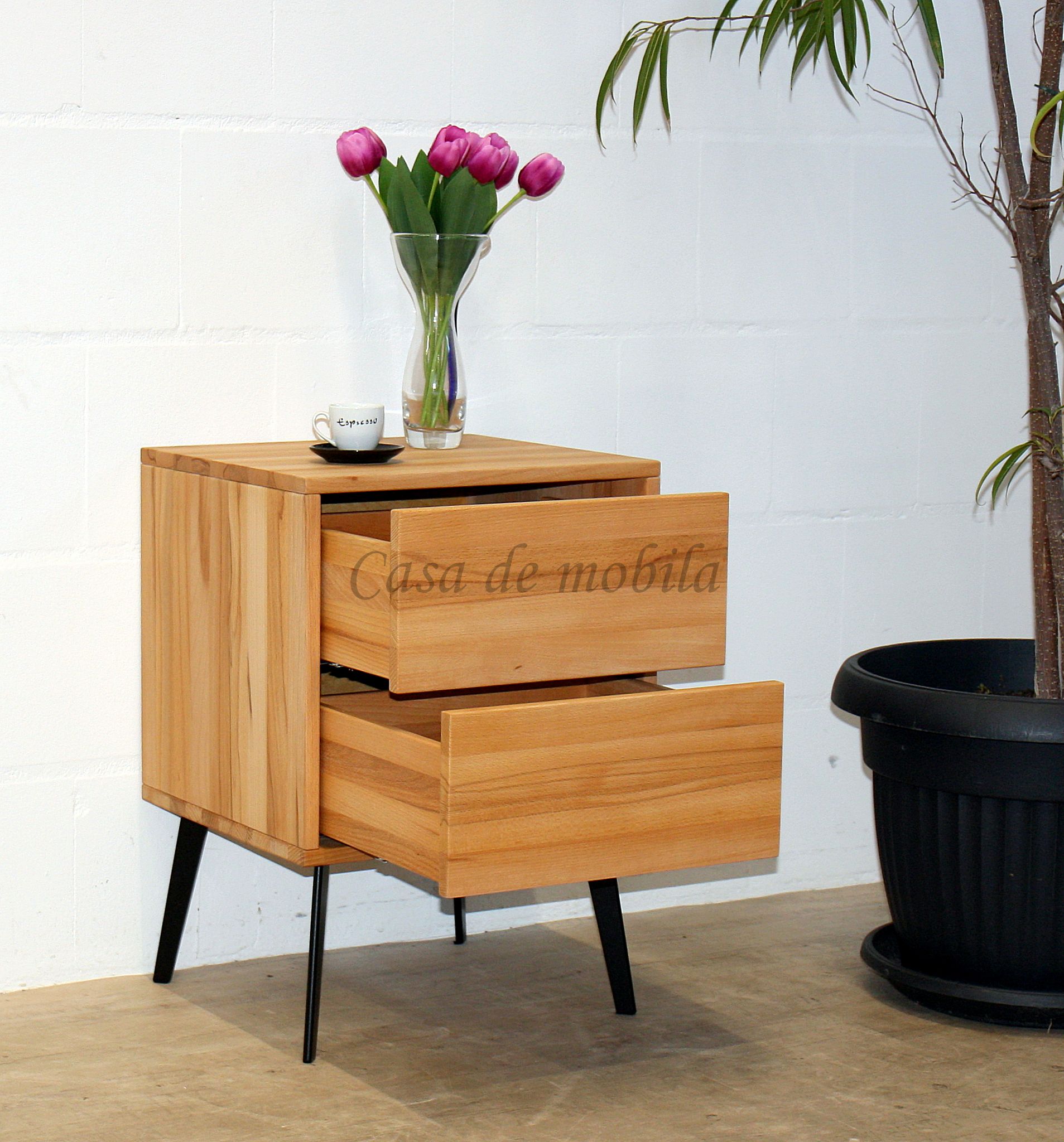 Echtholz Nachtschrank mit zwei Schubladen