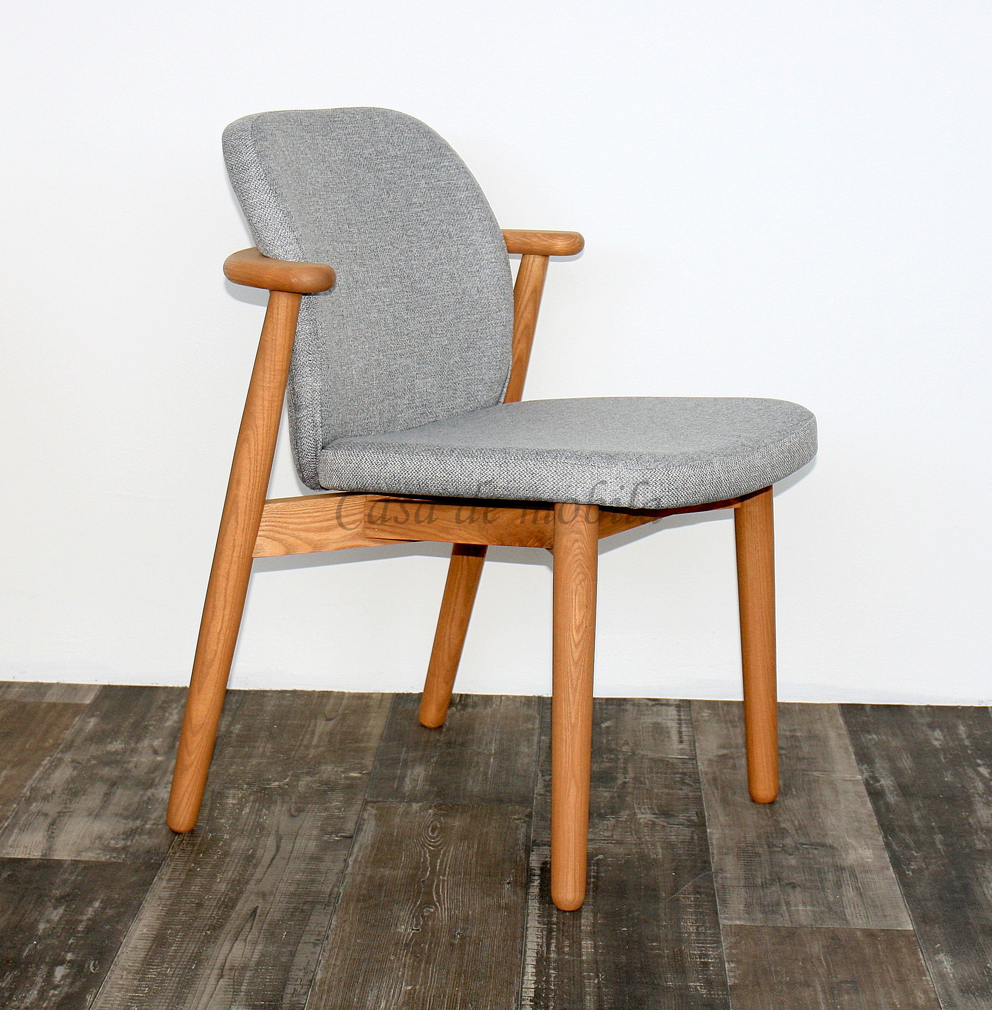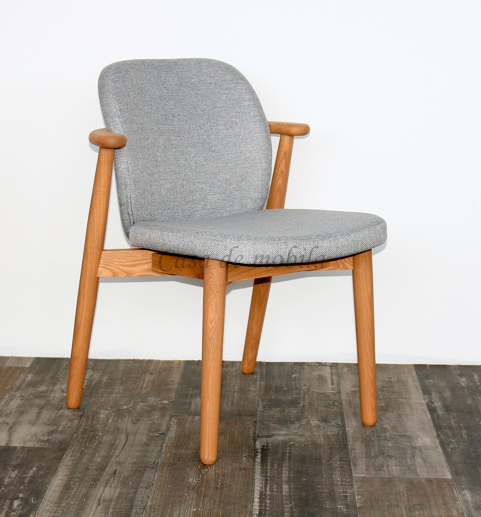 Stuhl mit Stoffpolster COSTNER 58x83x60cm, Stoff grau, Esche natur geölt