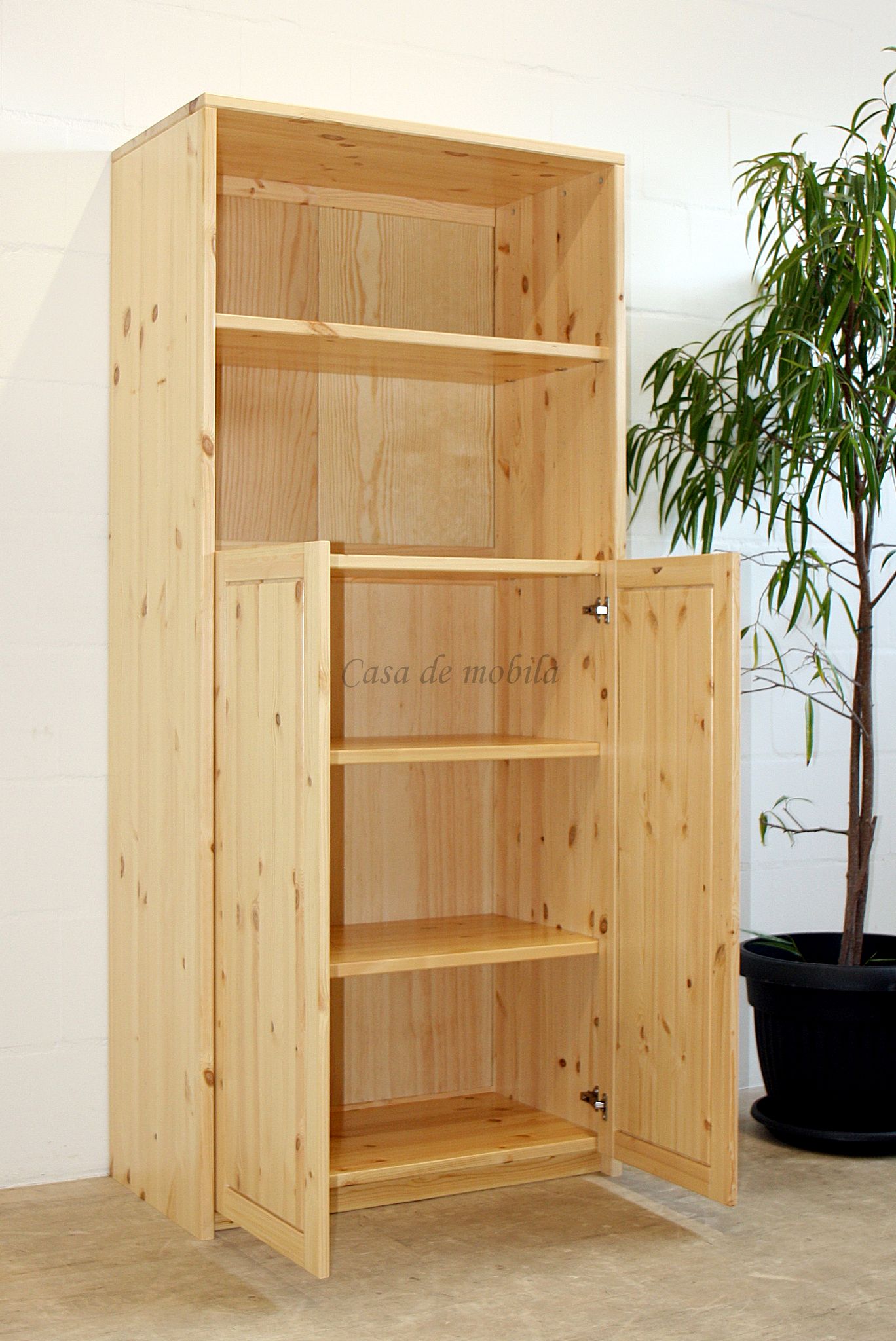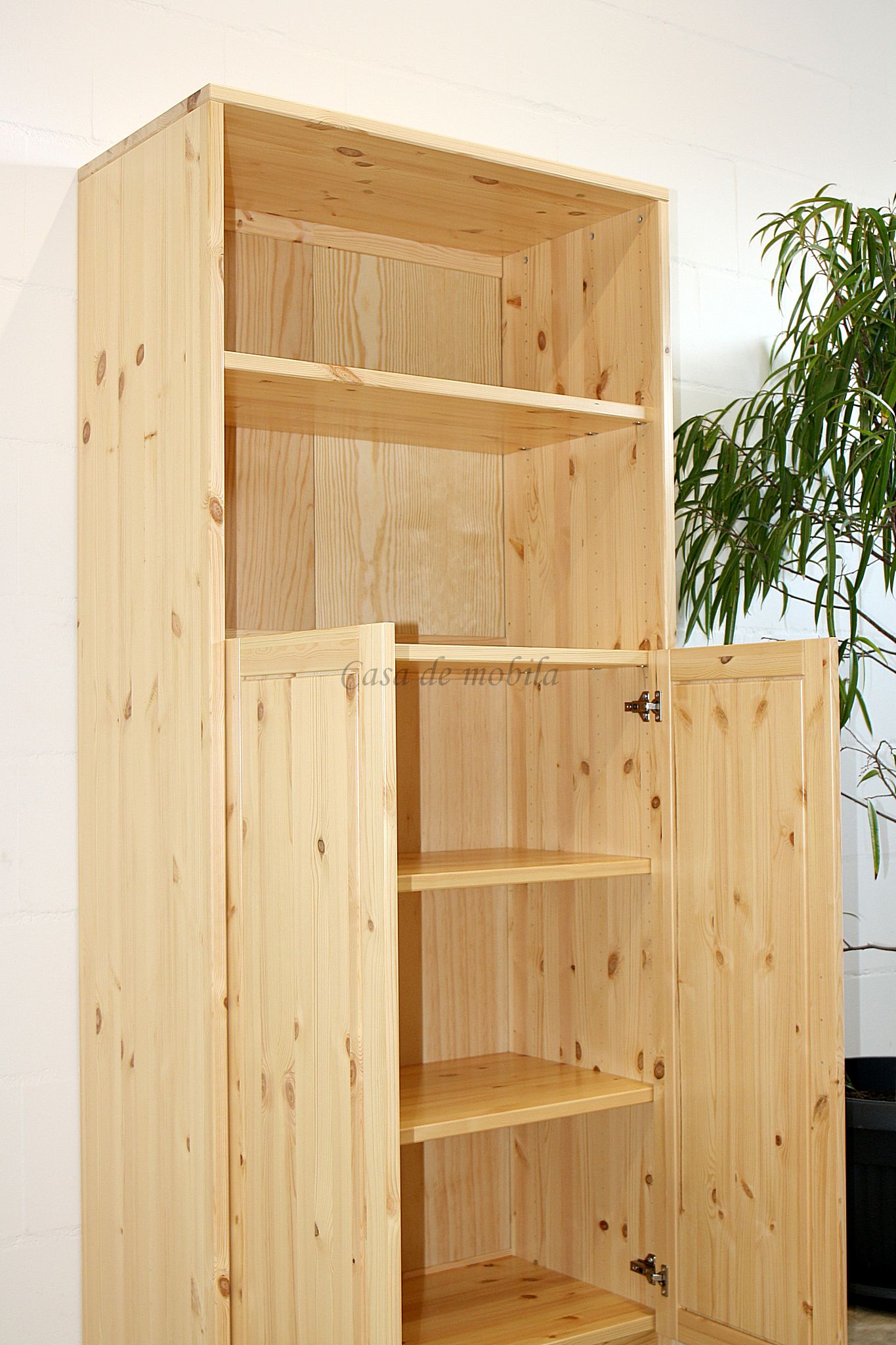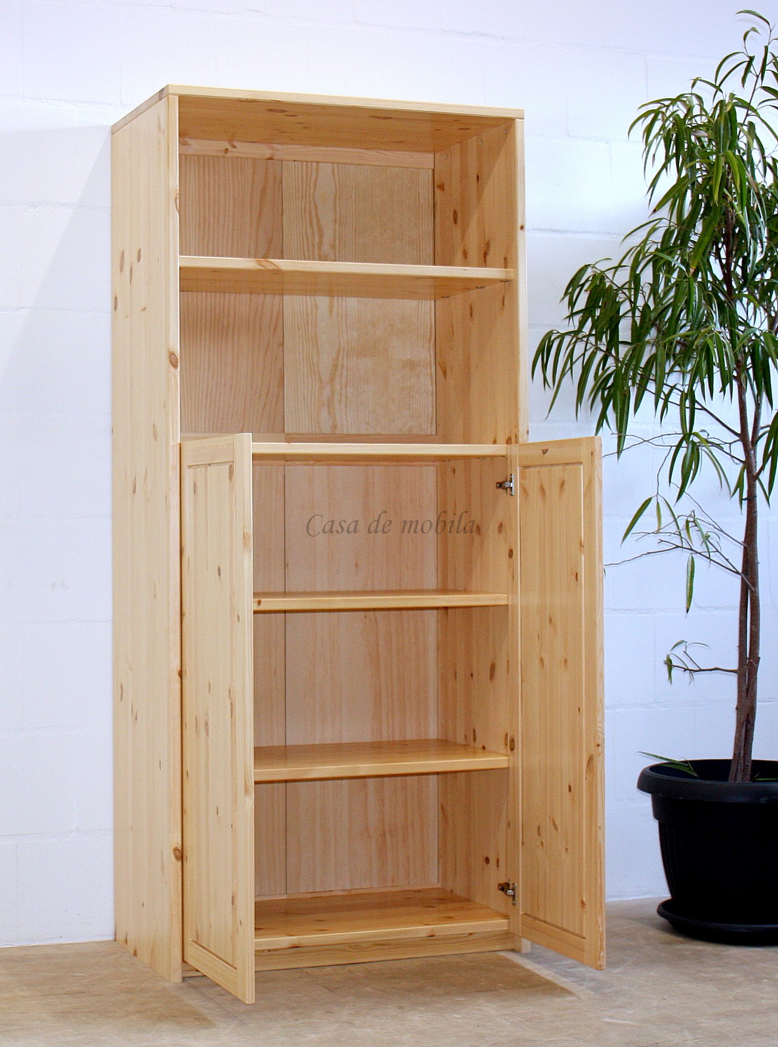 Massivholz Regal-Schrank mit Türen und offenen Fächern CONTRA ist aus Kiefernholz, Buchenholz oder Eichenholz lieferbar. Es stehen verschiedene Oberflächenbehandlungen wie geölt, lackiert oder weiß zur Auswahl. Das Möbelstück wird in Dänemark aus Massivholz gefertigt.