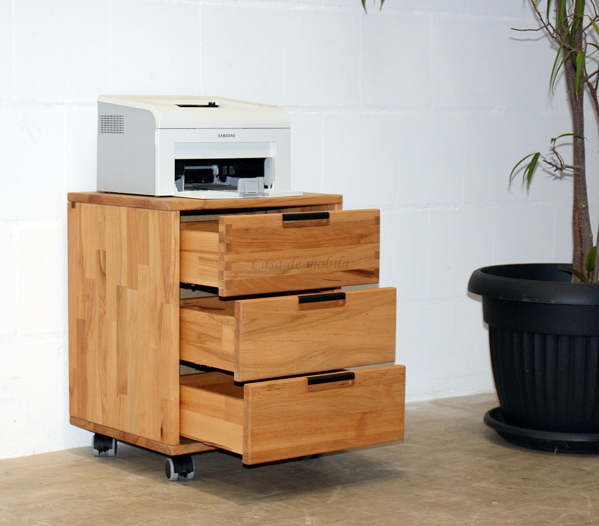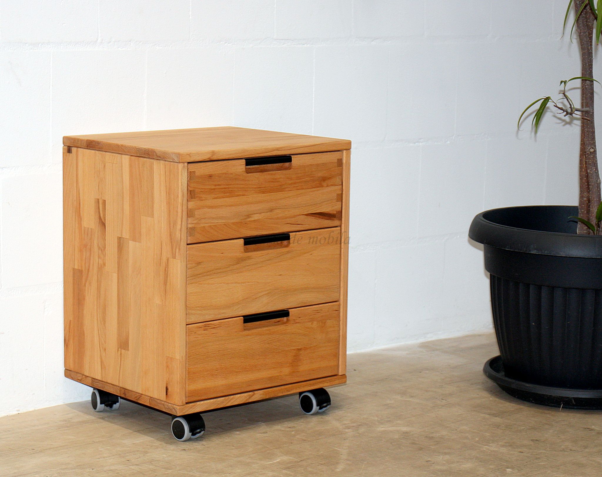 Die Oberfläche dieses Rollcontainers ist aus massiver Buche gefertigt und hat eine geölte Oberfläche.