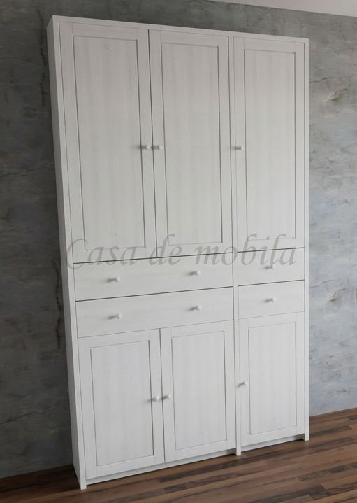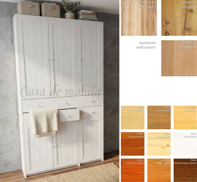 Dieser Schrank CONTRA ist aus Kiefernholz, Buchenholz oder Eichenholz lieferbar. Es stehen verschiedene Oberflächenbehandlungen wie geölt, lackiert oder weiß zur Auswahl. Das Möbelstück wird in Dänemark aus Massivholz gefertigt.