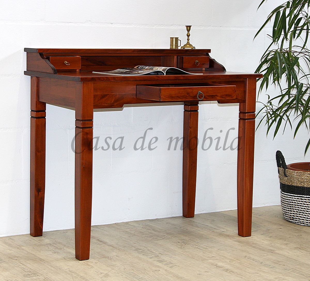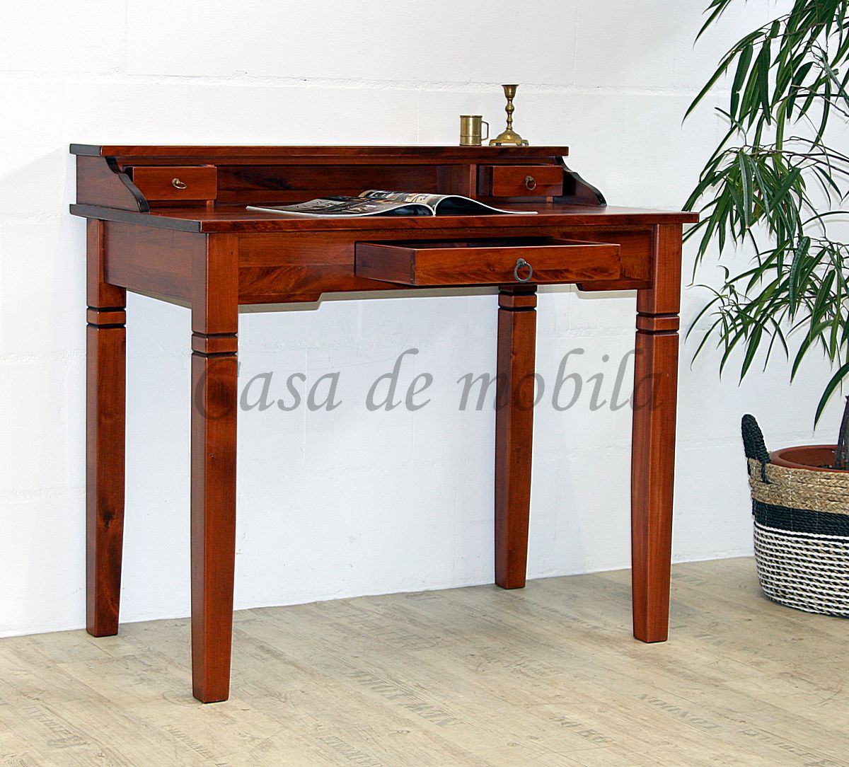 Sekretär DECOR 100x91x57cm Pappel massiv kirschbaumfarben lackiert mit Aufsatz