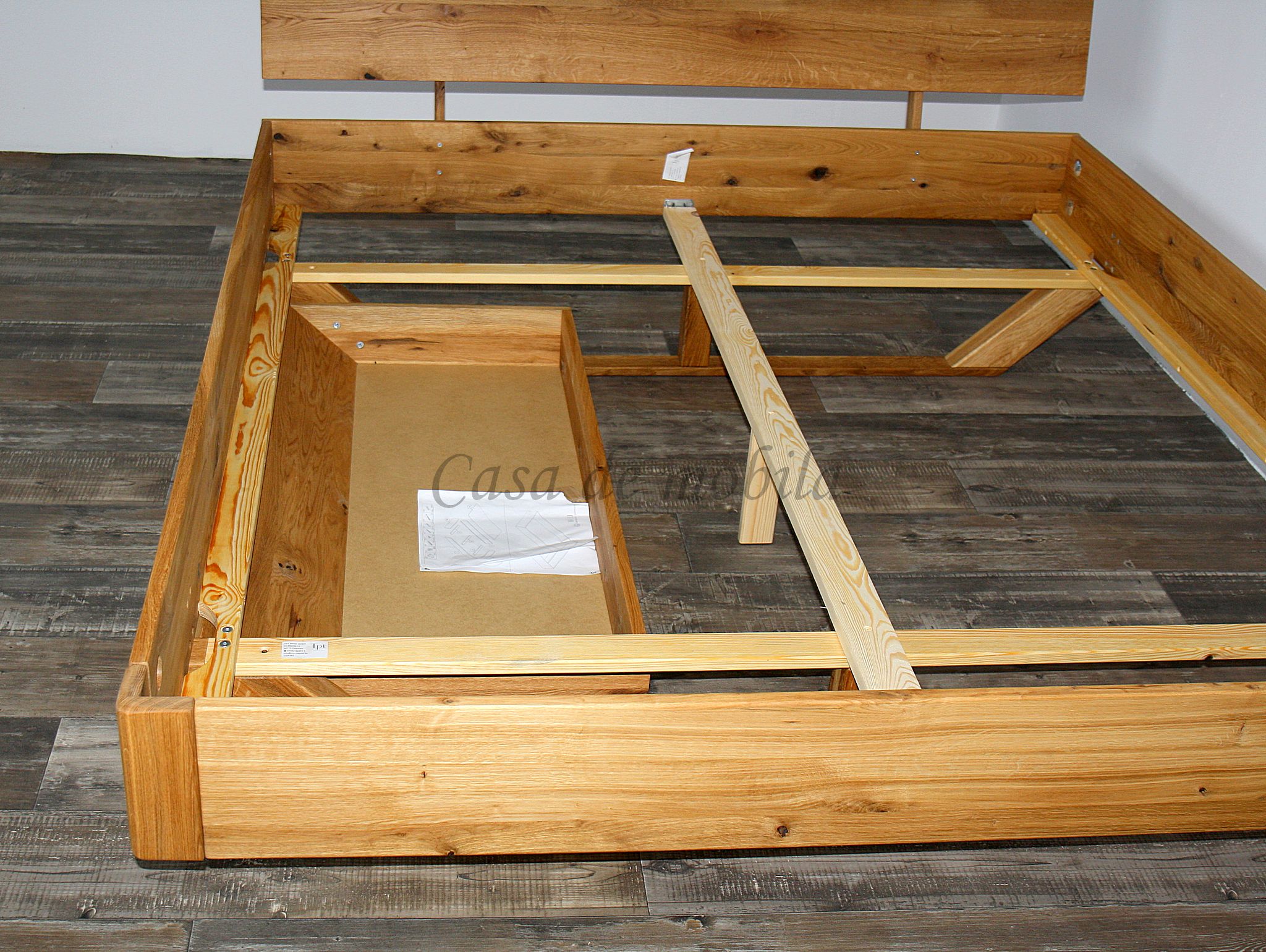 Besonders praktisch: Je nach Ausführung ist das Bett mit einer oder zwei geräumigen Schubladen auf Rollen erhältlich, die unauffällig unter dem Rahmen integriert sind und zusätzlichen Stauraum für Textilien oder Bettwäsche bieten.