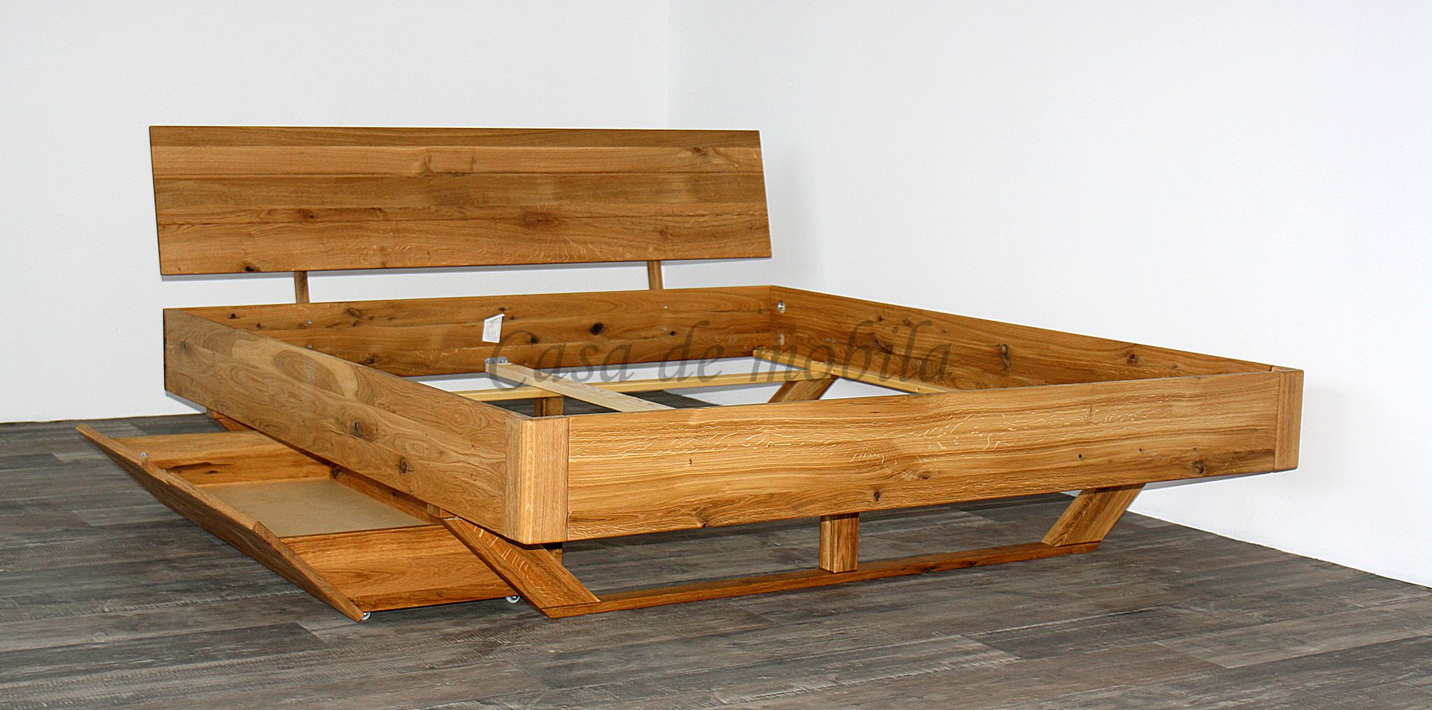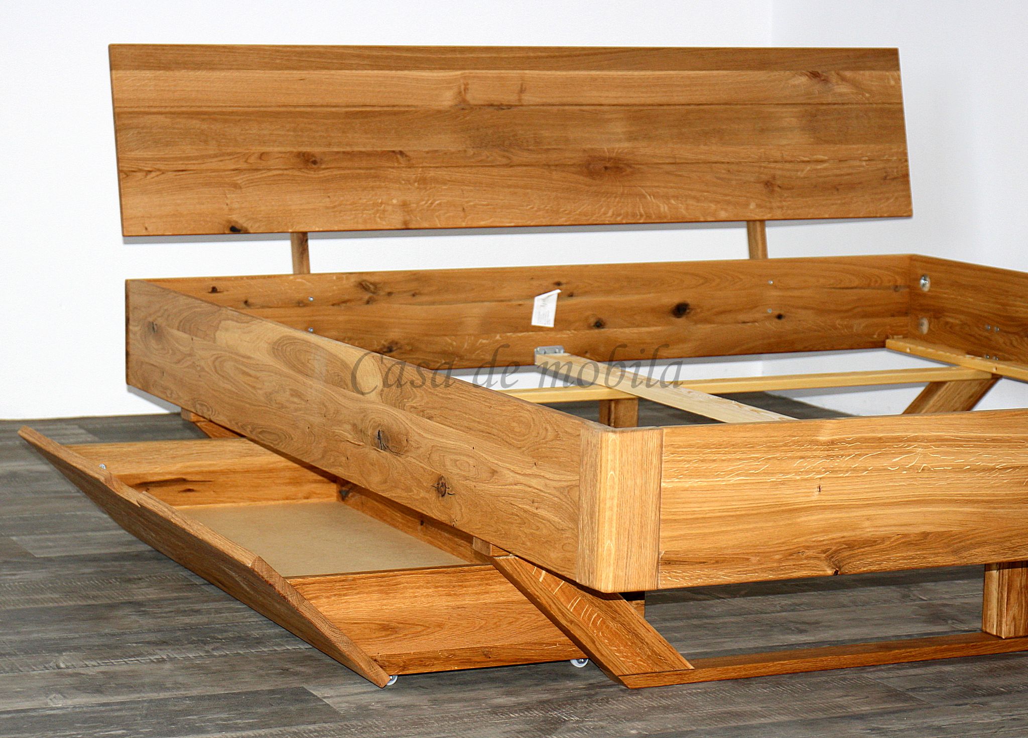 Das Schubladenbett DOINA 1 überzeugt durch seine klare Formgebung, natürliche Materialien und hohe Funktionalität. Gefertigt aus massiver Wildeiche, stabil verarbeitet und Natur geölt, bringt es die charaktervolle Holzmaserung optimal zur Geltung und sorgt für eine wohnliche, warme Atmosphäre im Schlafzimmer.