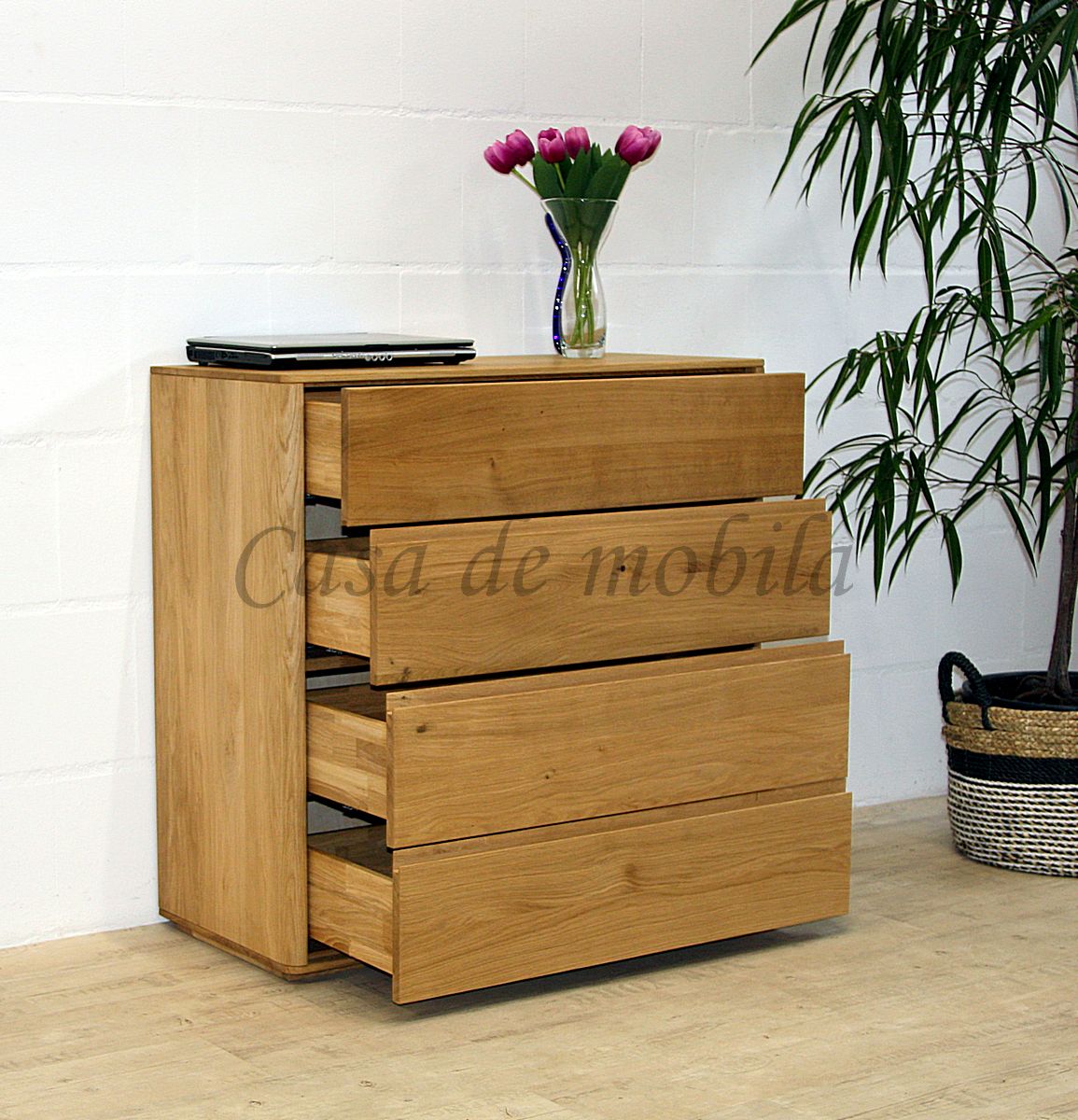 Echtholz Wäschekommode aus massivem Eichenholz massiv geölt