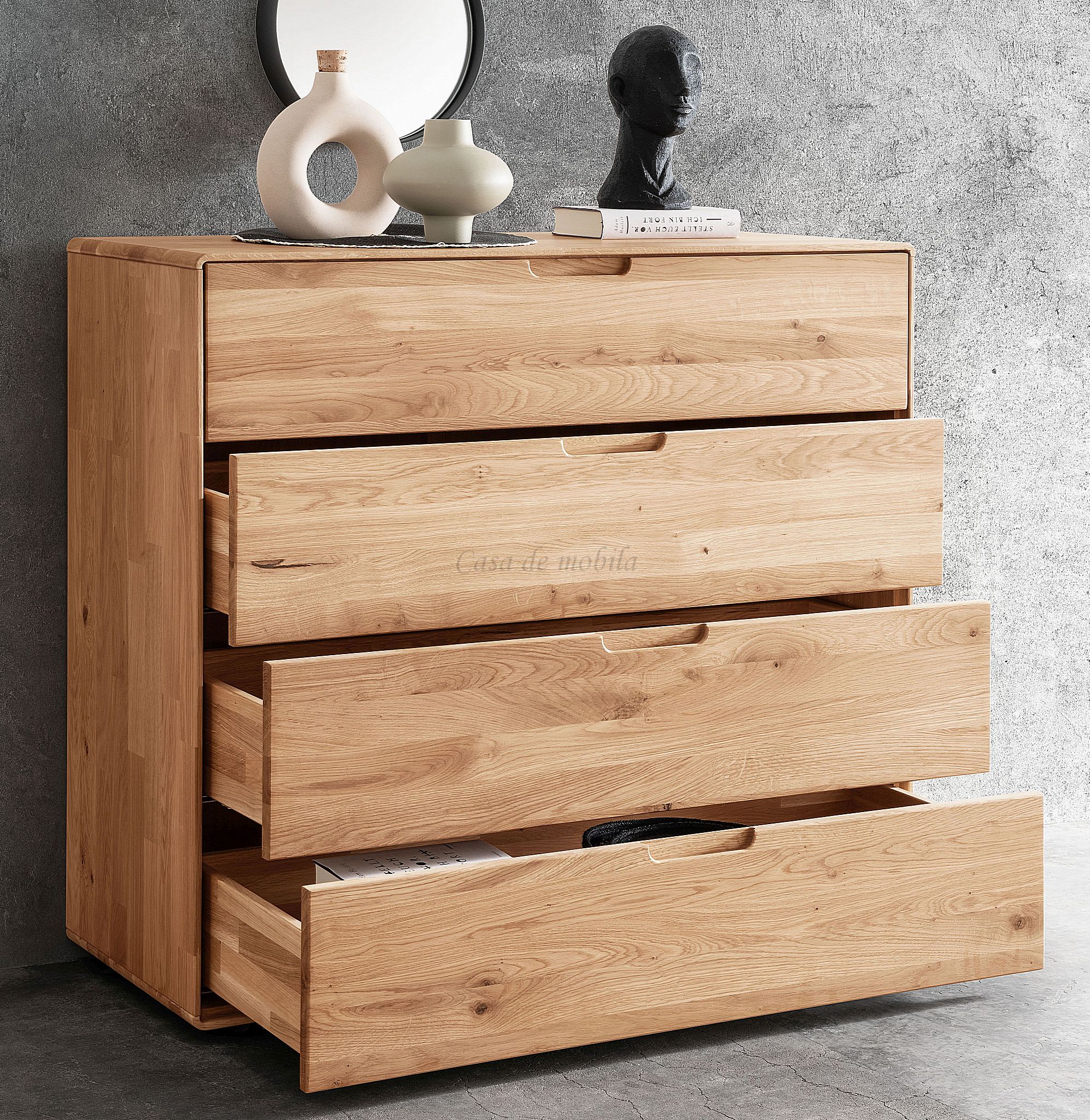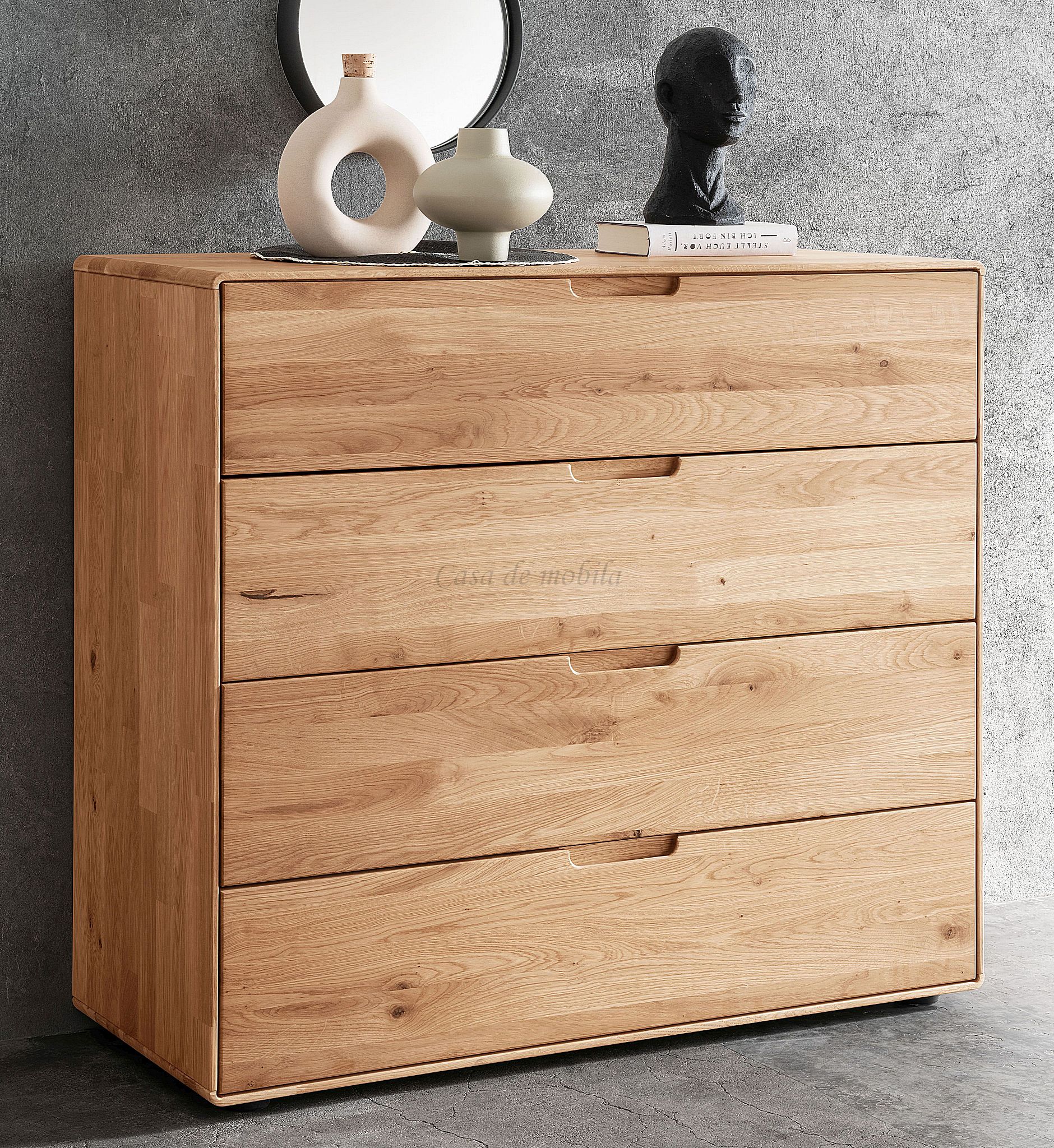 Diese exquisite breite Flurkommode mit abgerundeten Ecken aus massiver geölter Wildeiche vereint natürliche Eleganz mit funktionalem Design. Die hochwertige Verarbeitung und das robuste Material machen sie zu einem langlebigen Möbelstück, das in jedem Raum einen Hauch von Natur vermittelt.
