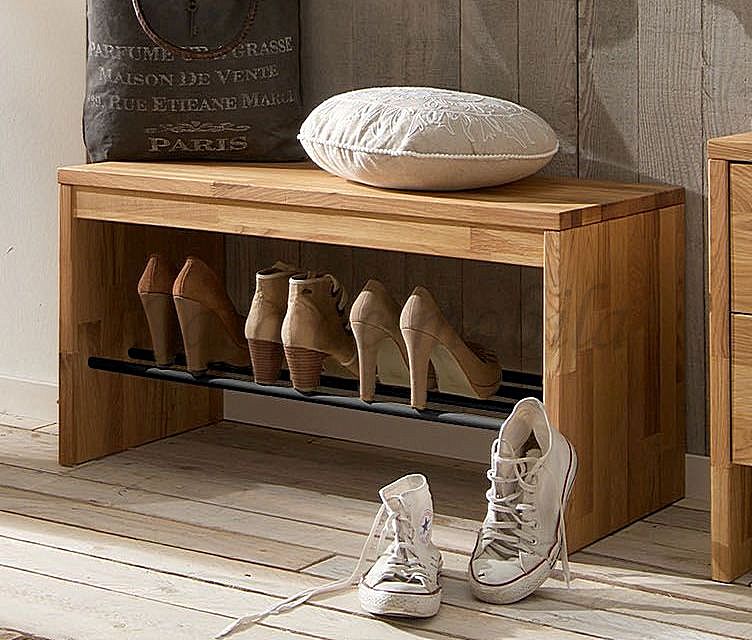 Schuhbank - Sitzbank - Vollholz - Beschläge schwarz