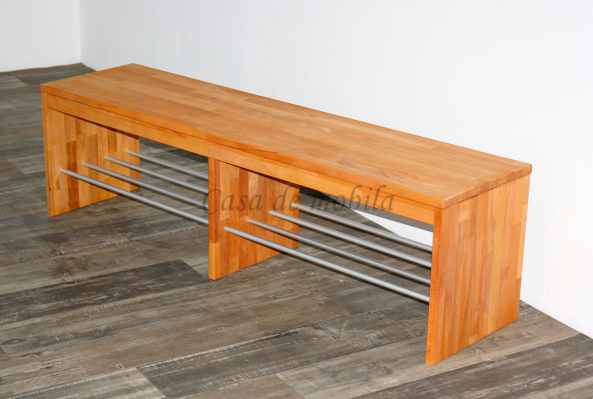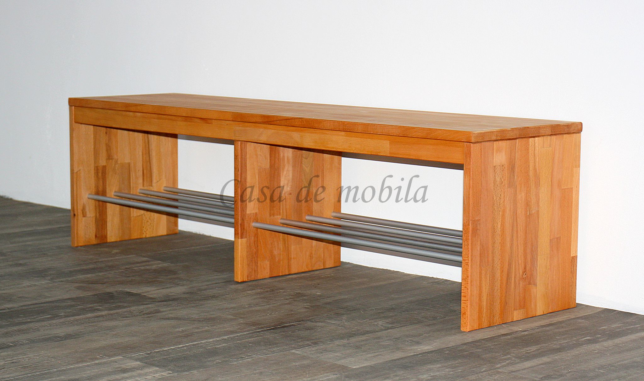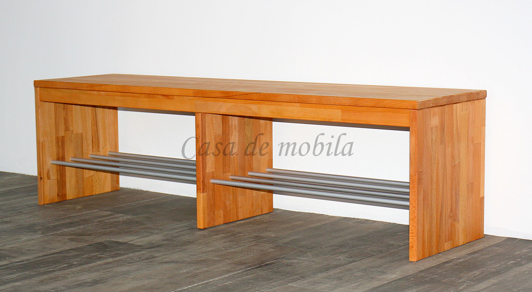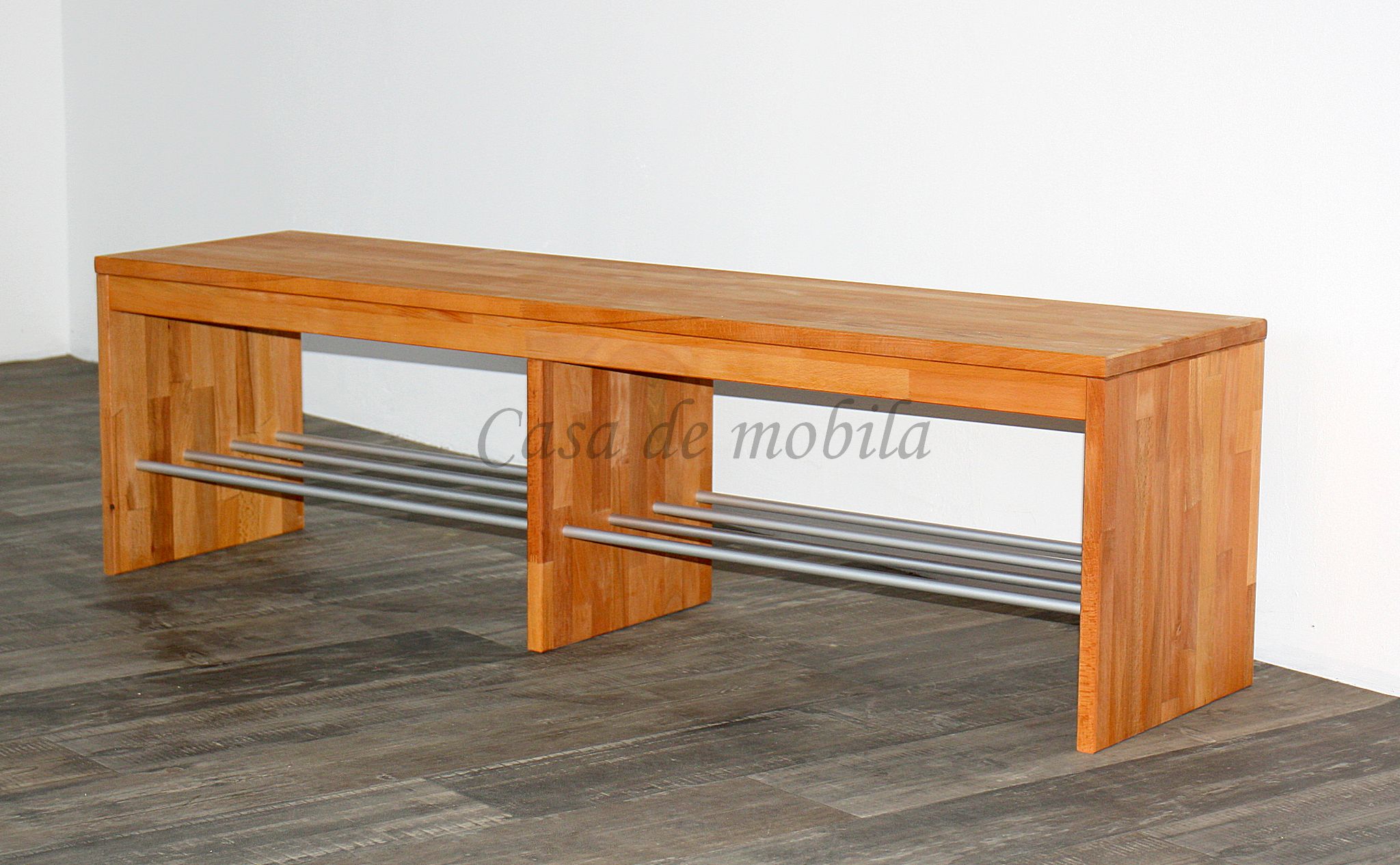 Sitzbank mit 2 Schuhablagen 160x45x40cm GOMMA Kernbuche massiv natur geölt