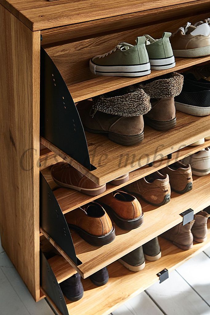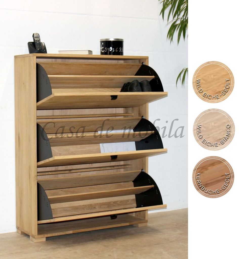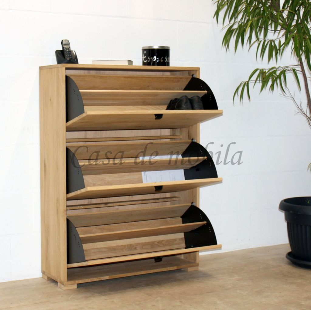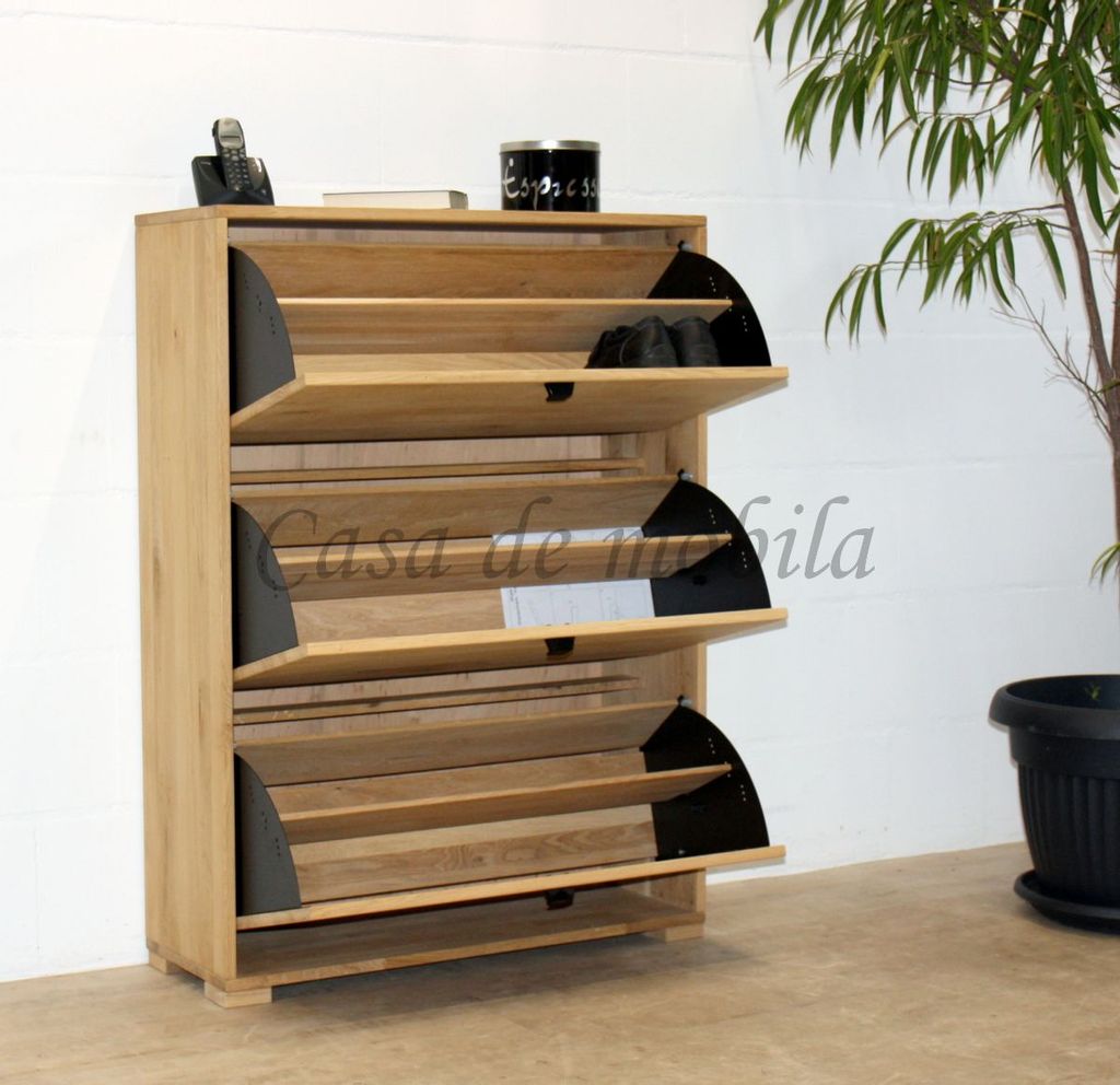 Diese Schuhkommode mit drei Klappen aus dem Dielenprogramm WALK IN vom dänischen Hersteller Tjørnbo ist aus massivem Eichenholz gefertigt. Die Oberfläche ist wahlweise natur oder bianco geölt und optional sandgestrahlt.