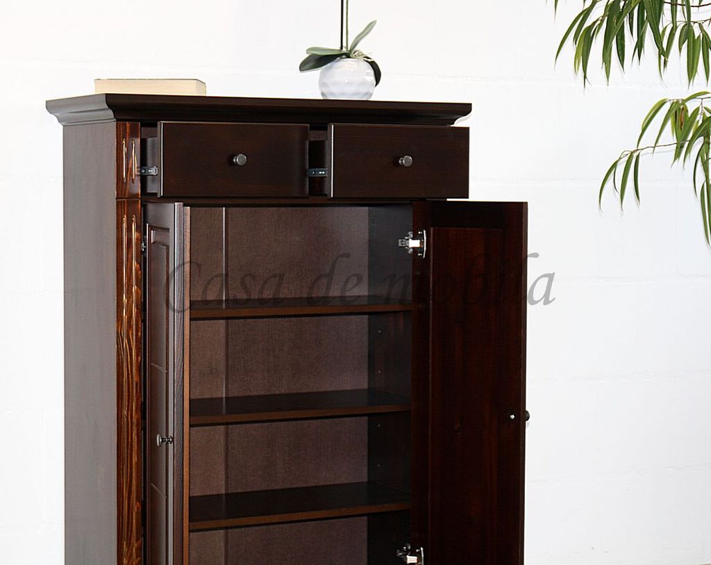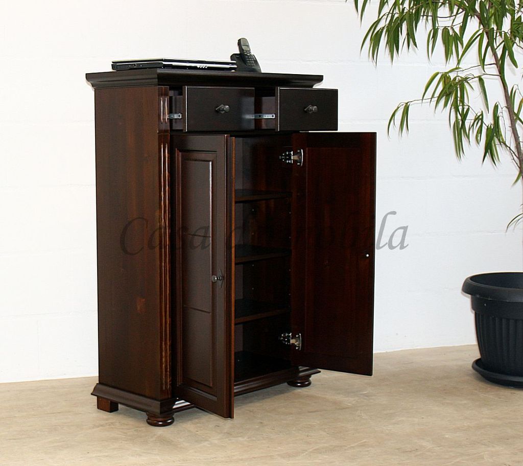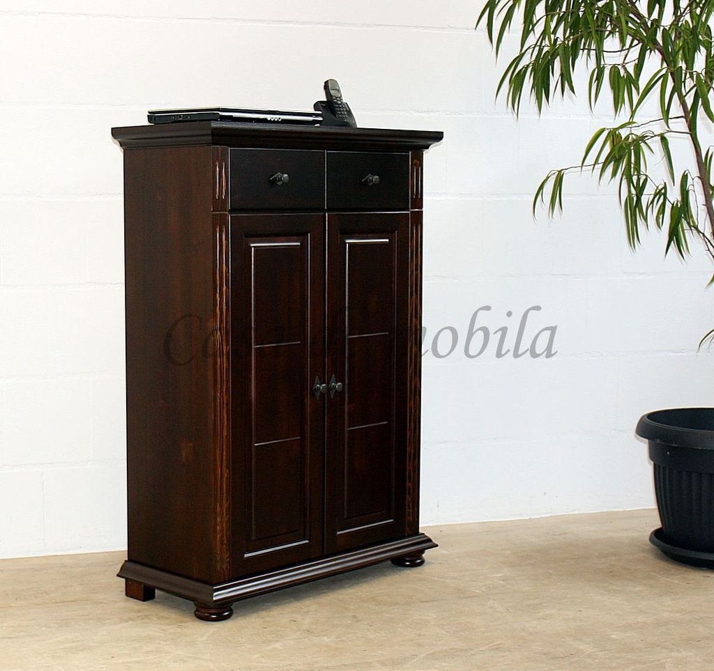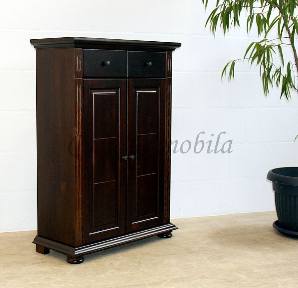 Wäschekommode MONA – aus massivem Fichtenholz, liebevoll in einer edlen Nussbaumfarbe lackiert. Die kompakte Aufteilung kombiniert stilvolle Wärme mit praktischer Funktionalität. Zwei Schubladen und viele Fächer hinter den Holztüren bieten ausreichend Stauraum für Wäsche, Bettwäsche und Accessoires oder viele Schuhe, während die glatte Lackoberfläche eine pflegeleichte Reinigung ermöglicht. Robust gebaut, langlebig im Alltagsgebrauch und ideal für Ihren Bedarf. Nachhaltig verarbeitetes Massivholz sorgt für natürliche Strahlkraft und eine wohnliche Atmosphäre.