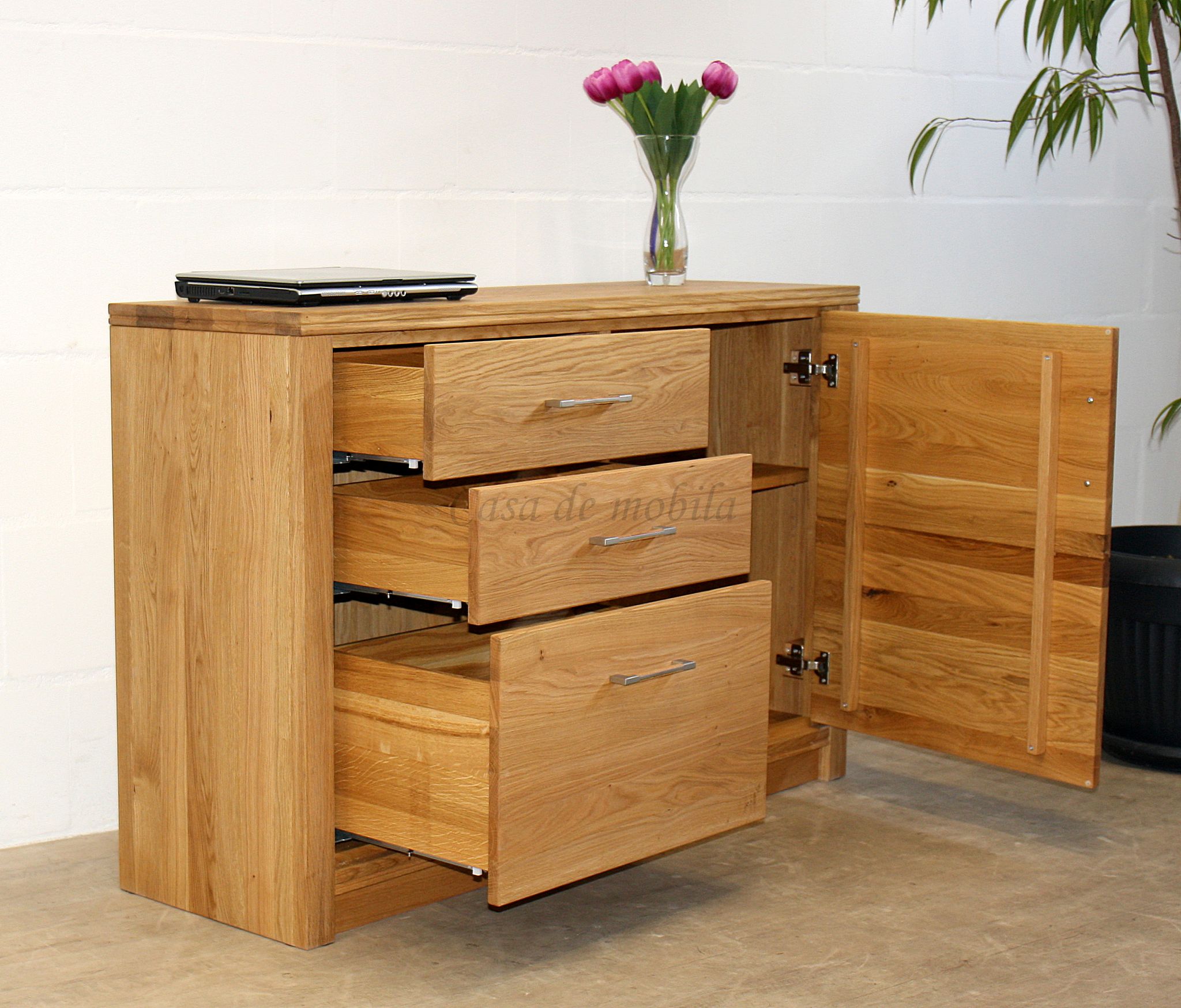 Massivholz-Sideboard mit drei Schubladen und einer Tür